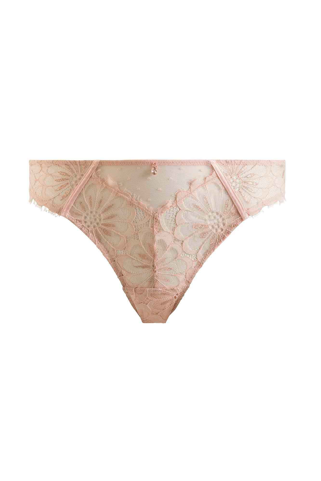 Slip en dentelle élégante motif « maxi marguerite » réhaussée d’une brillance cuivrée et tulle plumetis