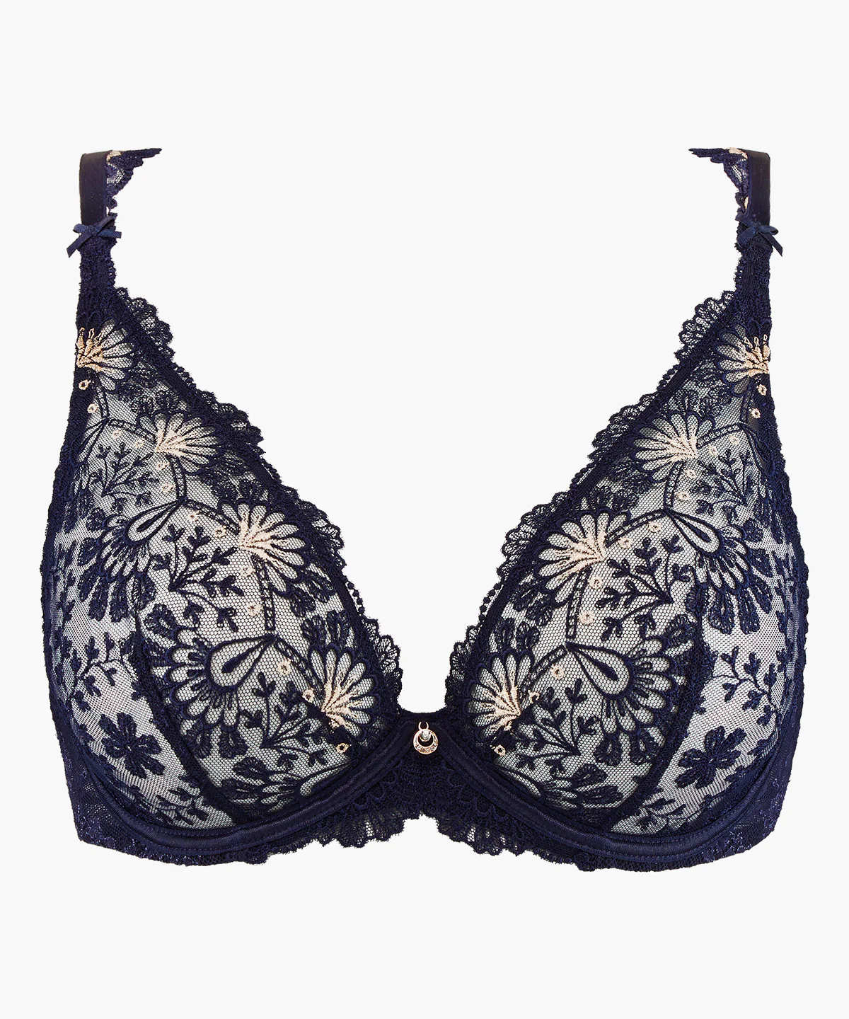 Le soutien-gorge triangle plunge Art of Ink est un atout pour les poitrines légères qui désirent un décolleté plongeant et un maintien confortable. Les armatures apportent du confort, dans une matière riche en broderies, qui se déploie tout en habillant le décolleté. Les jeux de transparence à l’entresein s’illuminent d’un bijou précieux.