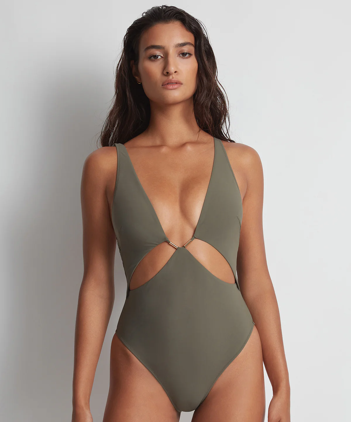 À la fois moderne et sophistiqué, le maillot de bain une pièce nageur souple Beach Escape déploie sa maille stretch douce et confortable sur tout le buste. Offrant un décolleté profond, il souligne la poitrine par un jeu d’ouvertures, de liens et de tubes dorés entrecroisés pour un effet visuel hypnotique. Derrière, il offre un dos vertigineux, structuré par des bretelles réunissant au creux des reins dans une pièce exceptionnelle, portée comme un top, avec un pantalon ou une jupe taille haute pour un style audacieux, tout en fraîcheur et en originalité.