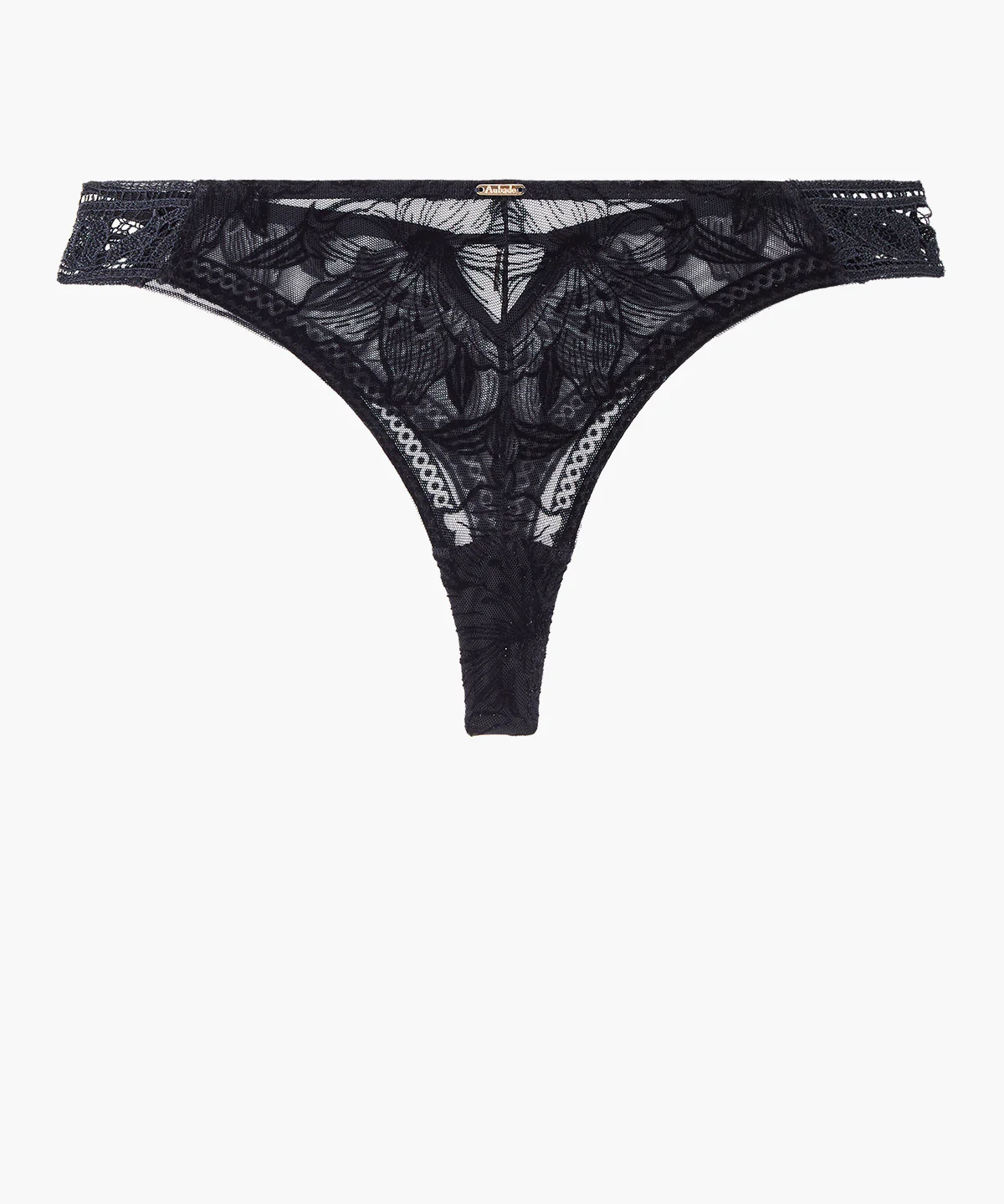 Le tanga Cœur à Corps offre un modèle confortable et discret sous les vêtements. Mettant en valeur les hanches, il mêle galon floral et guipure graphique ajourée. Dans le dos, une découpe sexy rehaussée par un bijou doré souligne le creux des reins pour une sensualité tout en subtilité.