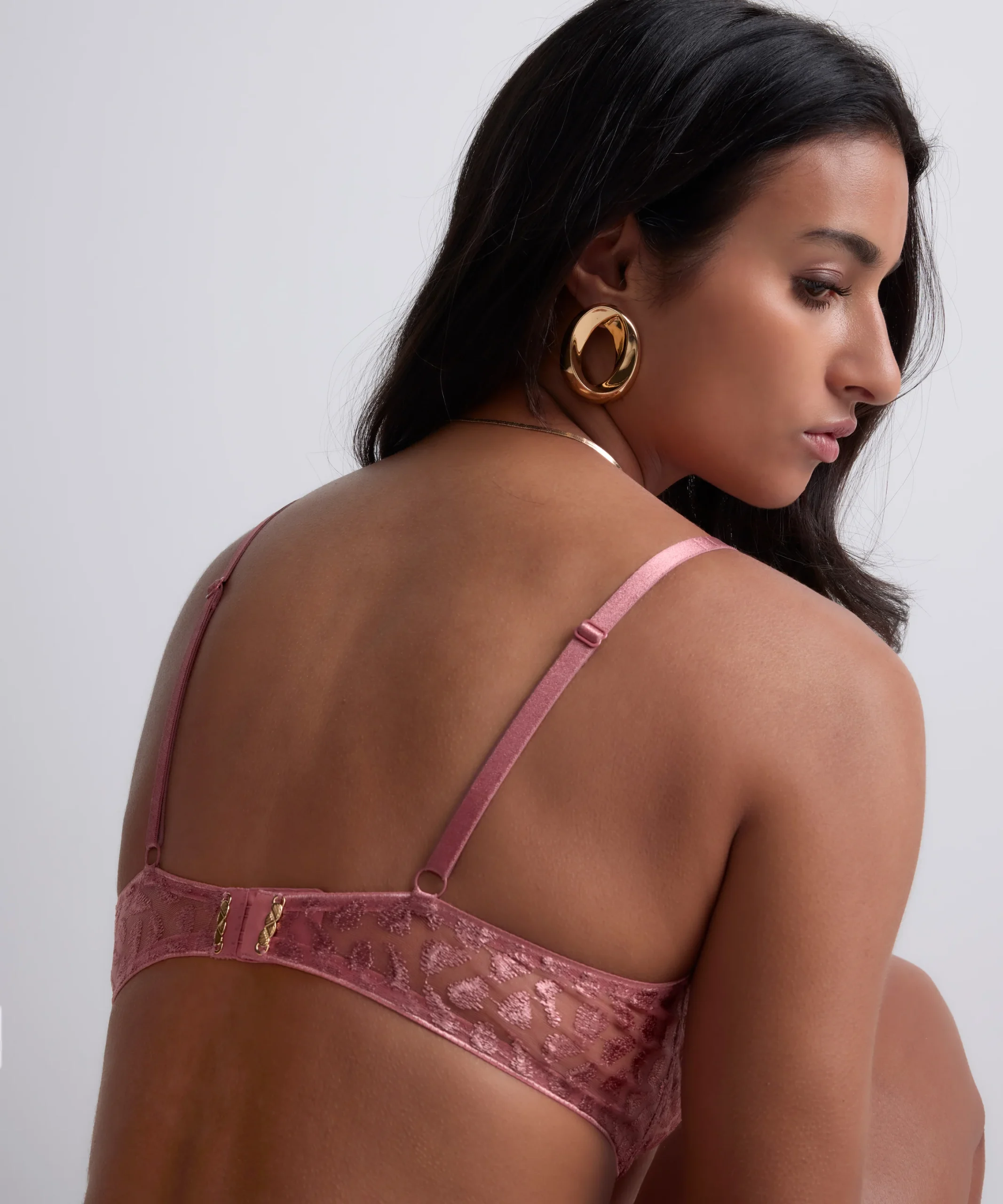 Forme originale, à la fois graphique, confortable et contemporaine, le soutien-gorge triangle mono-armature Crazy in Love offre un décolleté profond, souligné par un détail doré ciselé et une ouverture structurée très sexy qui mettent en valeur l’entregorge. Jouant la transparence avec audace, il signe une allure au caractère résolument affirmé.