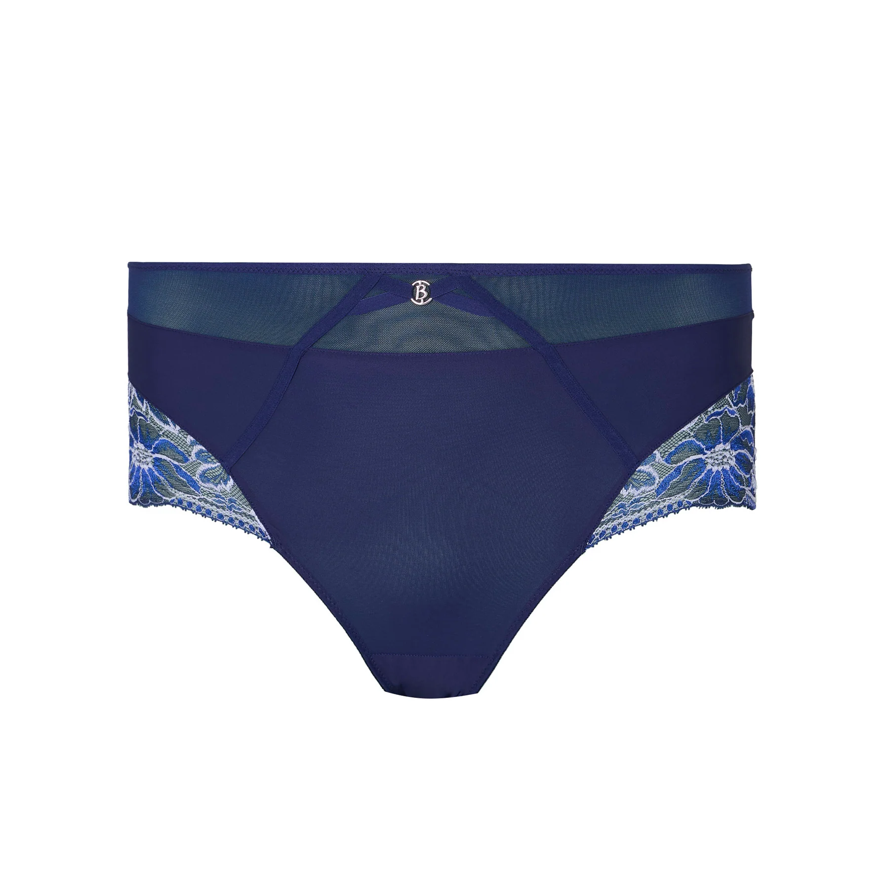 • Dentelle esprit broderie 3 tons devant et dos• Empiècements devant et dos en maille microfibre et en tulle élastique transparent • Taille soulignée d’un élastique bord cheval• Jeu de laçage sur empiècement milieu devant avec un bijou B signature couleur « or »• Pas d’élastique autour des cuisses pour une invisibilité sous les vêtements.