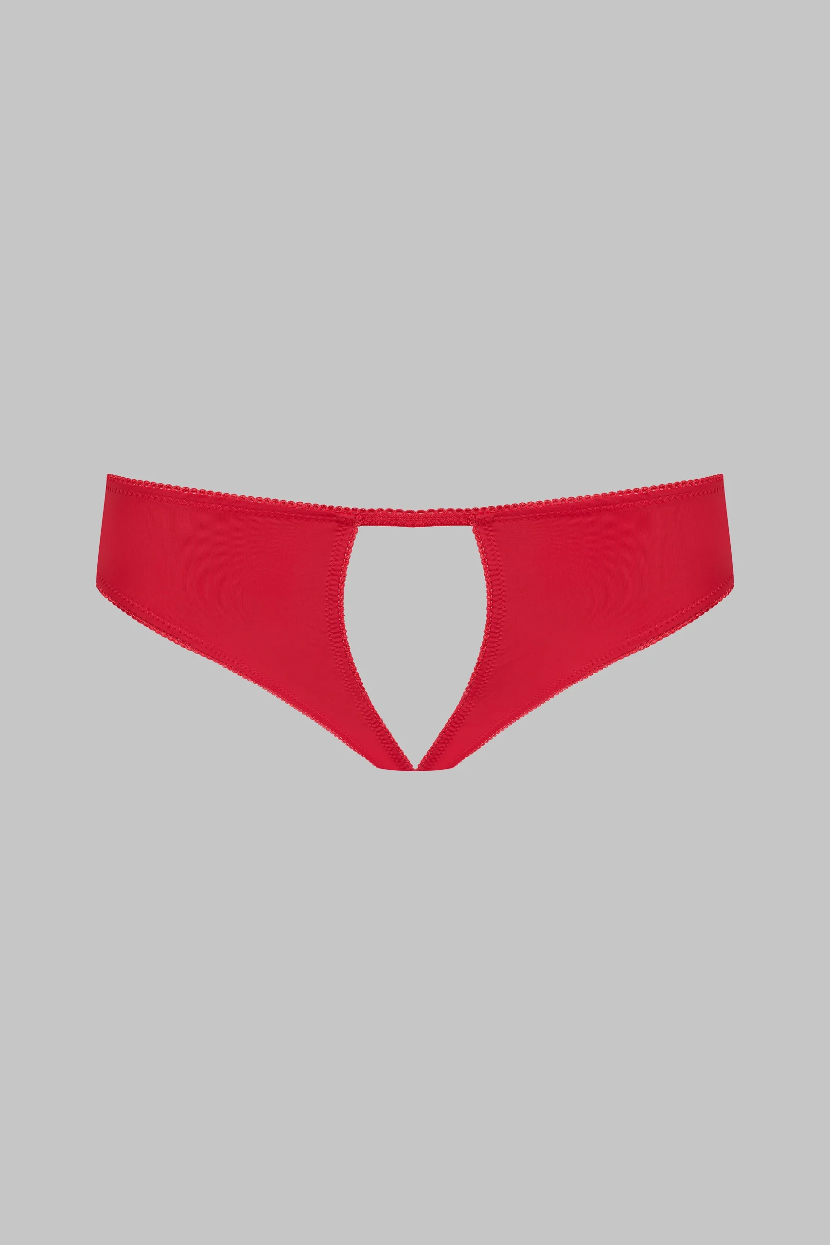 Culotte ouverte en microfibre opaque bordé d’élastiques à picots. Coupe structurée par deux pans ouverts de l’avant à l’arrière.
