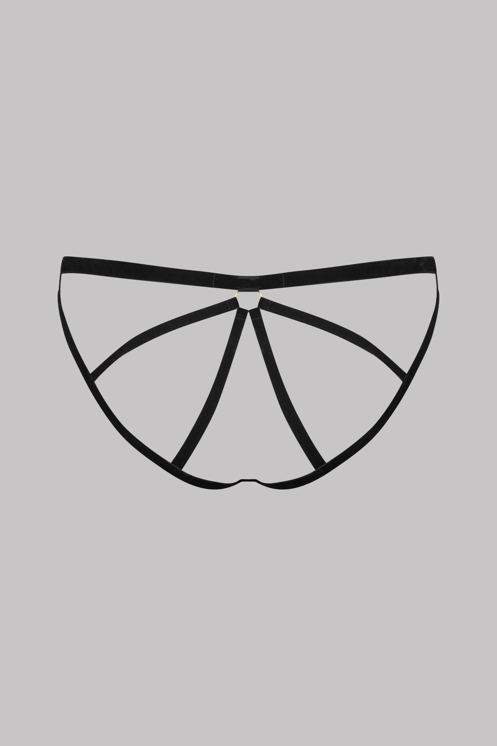 La culotte ouverte PARURE VELOURS joue sur l’épure et la suggestion. Conçue en velours doux au toucher, elle dévoile une structure ouverte à la géométrie travaillée, ponctuée d’une pampille dorée gravée Maison Close. Pensée pour être portée seule ou attachée au harnais assorti, elle permet de créer l’illusion d’un body. Elle épouse la morphologie avec précision et discrétion. Un dessous trompe l’œil, minimal et graphique.