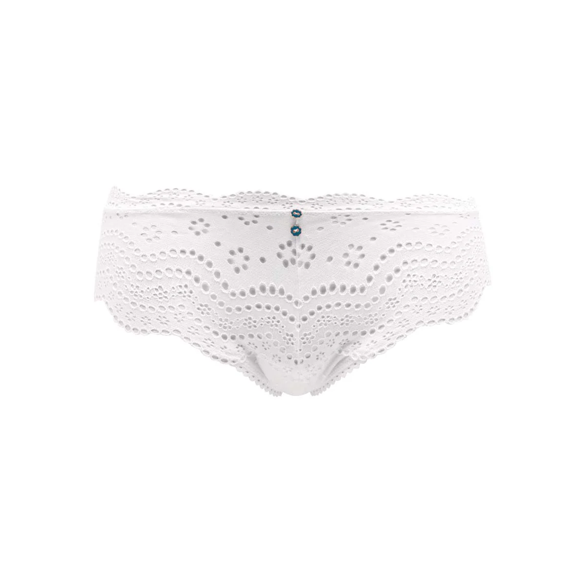 DESCRIPTIONShorty tanga tout en broderie anglaiseEmpiècement de tulle plumetis stretch dans le dosBoutons émaillés forme marguerite à la ceinturePanneau avant doubléFond doublé d’un gousset 100% cotonDisponible du 36 au 44 COMPOSITIONDentelle : 90% Polyamide 10 % Elasthanne Tulle : 88% Polyamide 12 % ElasthanneGousset : 100% Coton