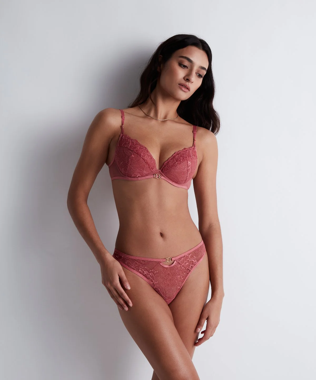 Offrant un effet discret sous les vêtements, le tanga Feeling Myself associe une dentelle florale raffinée et un tulle transparent doux dans une forme confortable et flatteuse. Devant, une ouverture sexy rehaussée par un bijou doré apporte une touche de séduction supplémentaire à ce modèle résolument pensé pour la sensualité.