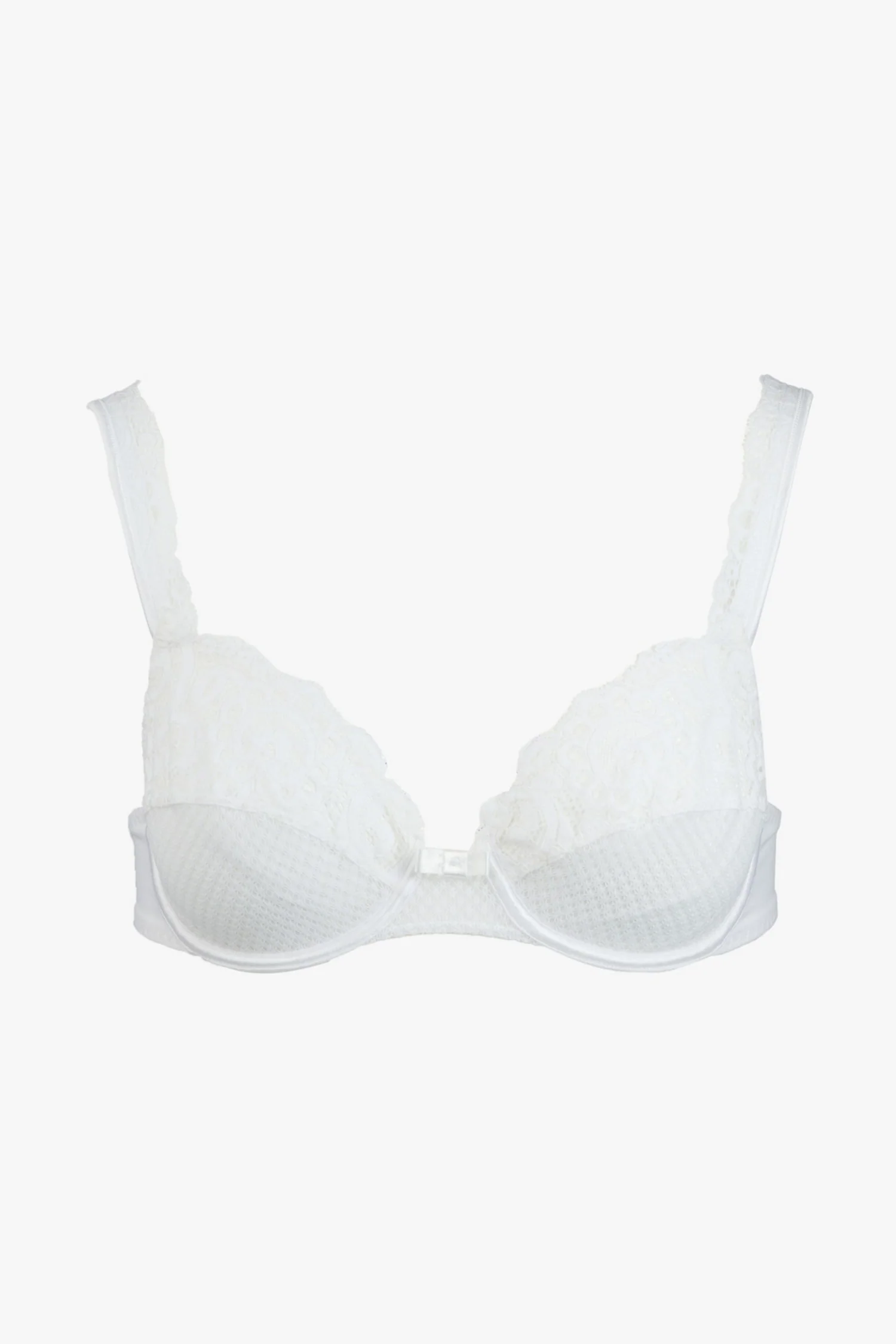 Un soutien-gorge avec armatures en dentelle française et résille pour un style rétro et confortable.