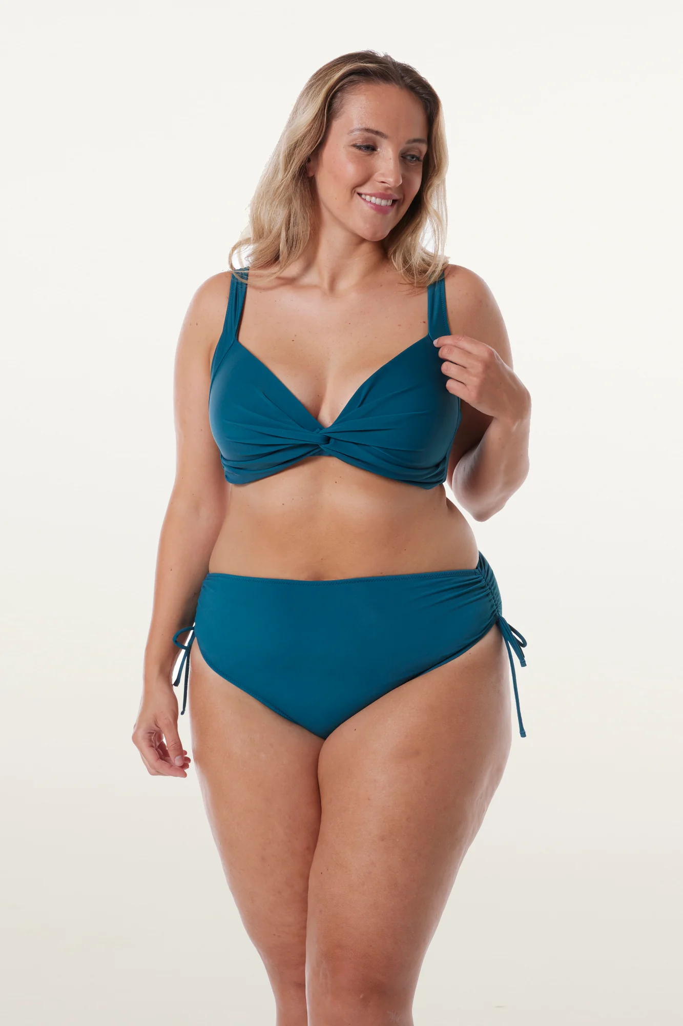 Conçu en microfibre unie de haute qualité, notre haut de maillot de bain « GIN » présente un effet « drapé » subtil qui ajoute une dimension supplémentaire à son allure classique. Les coques souples intégrées offrent un soutien optimal tout en maintenant une silhouette naturelle et élégante.