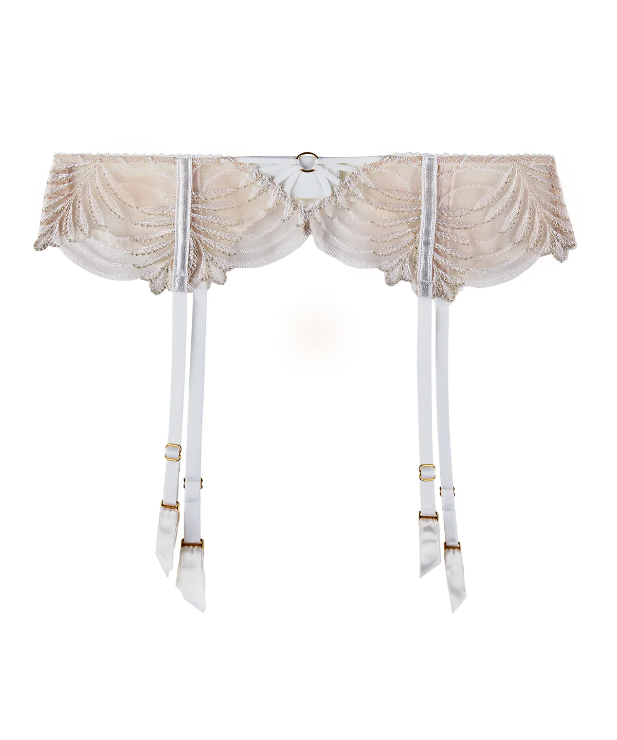 Pièce d’exception, le porte-jarretelles Hypnolove complète les parures de la même ligne dans un esprit subtilement érotique. Avec son jeu de liens entrecroisés rehaussant une broderie exclusive, il met sensuellement en valeur les hanches. Derrière, il se pare d’un tulle transparent doux et sexy pour une silhouette tout en séduction.