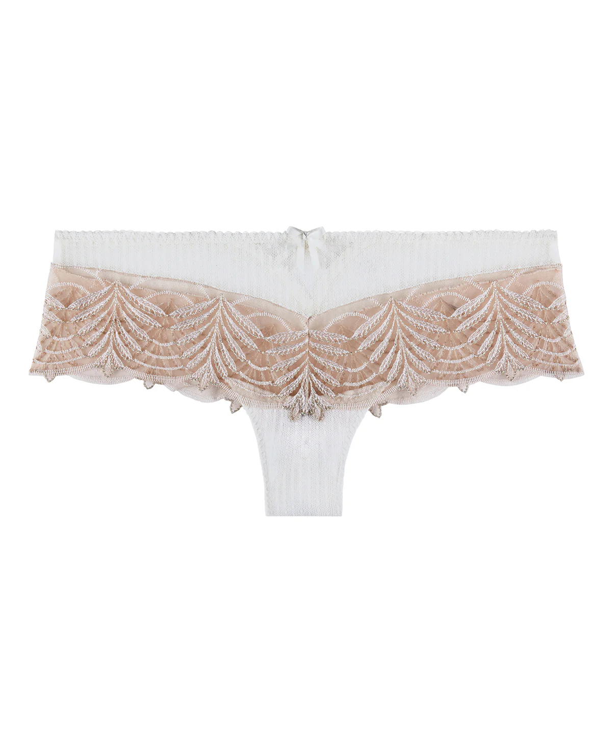 - Détail d’ouverture sexy avec liens bondage et anneau doré au dos des slips