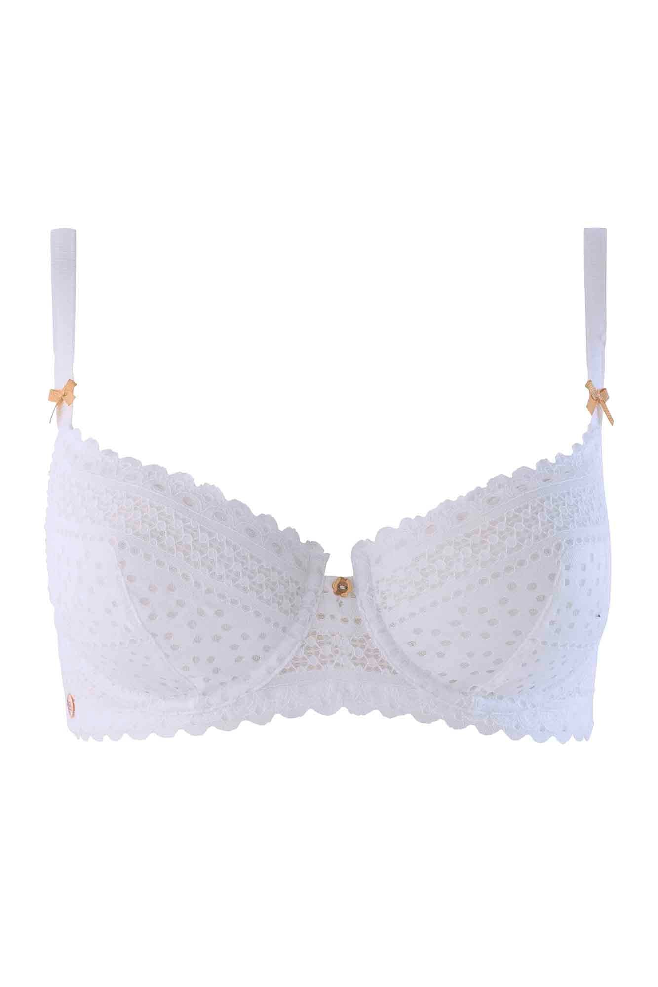DESCRIPTIONSoutien-gorge armatures finition mini bustierTout en dentelle signature inspiration broderie anglaiseTulle plumetis stretch sur les ailesBoutons effet bois forme marguerite à l’entre-bonnetsNœuds contrastés aux départs de bretellesBretelles fantaisie fines et amoviblesBasque sous poitrine élastiquéeFermeture dos 3 agrafes, 3 positionsDisponible du 90B au 95D COMPOSITIONDentelle : 88% Polyamide 12% Elasthanne Matière secondaire : 88% Polyamide 12% […]