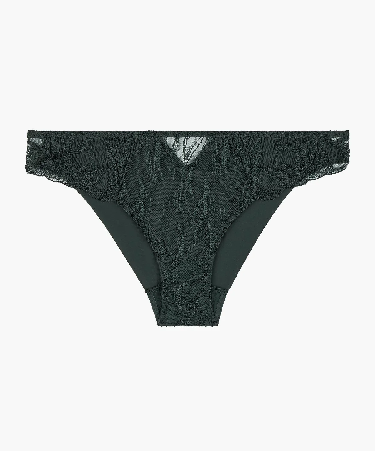 Pensée pour le quotidien, la culotte brésilienne Into The Groove offre une coupe sexy qui met en valeur les courbes féminines. Associant la délicatesse d’une broderie raffinée et la transparence d’un tulle léger devant, elle se pare, dans le dos, d’une maille douce pour un effet seconde peau infiniment confortable.