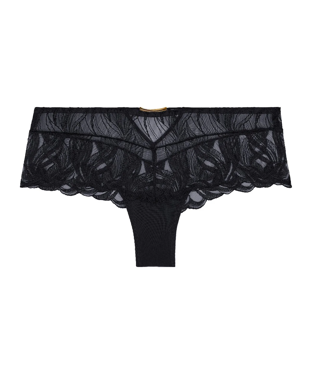 Tout en transparence, le shorty Into The Groove offre une silhouette résolument moderne. Confortable et flatteur, il pare les hanches d’une broderie exclusive, rehausse le galbe des fesses dans une coupe légèrement échancrée et souligne le creux des reins d’une forme en V, sublimée par un détail doré élégant.