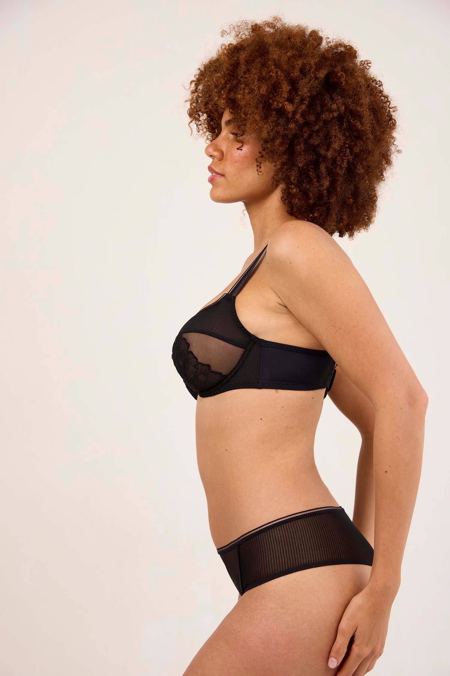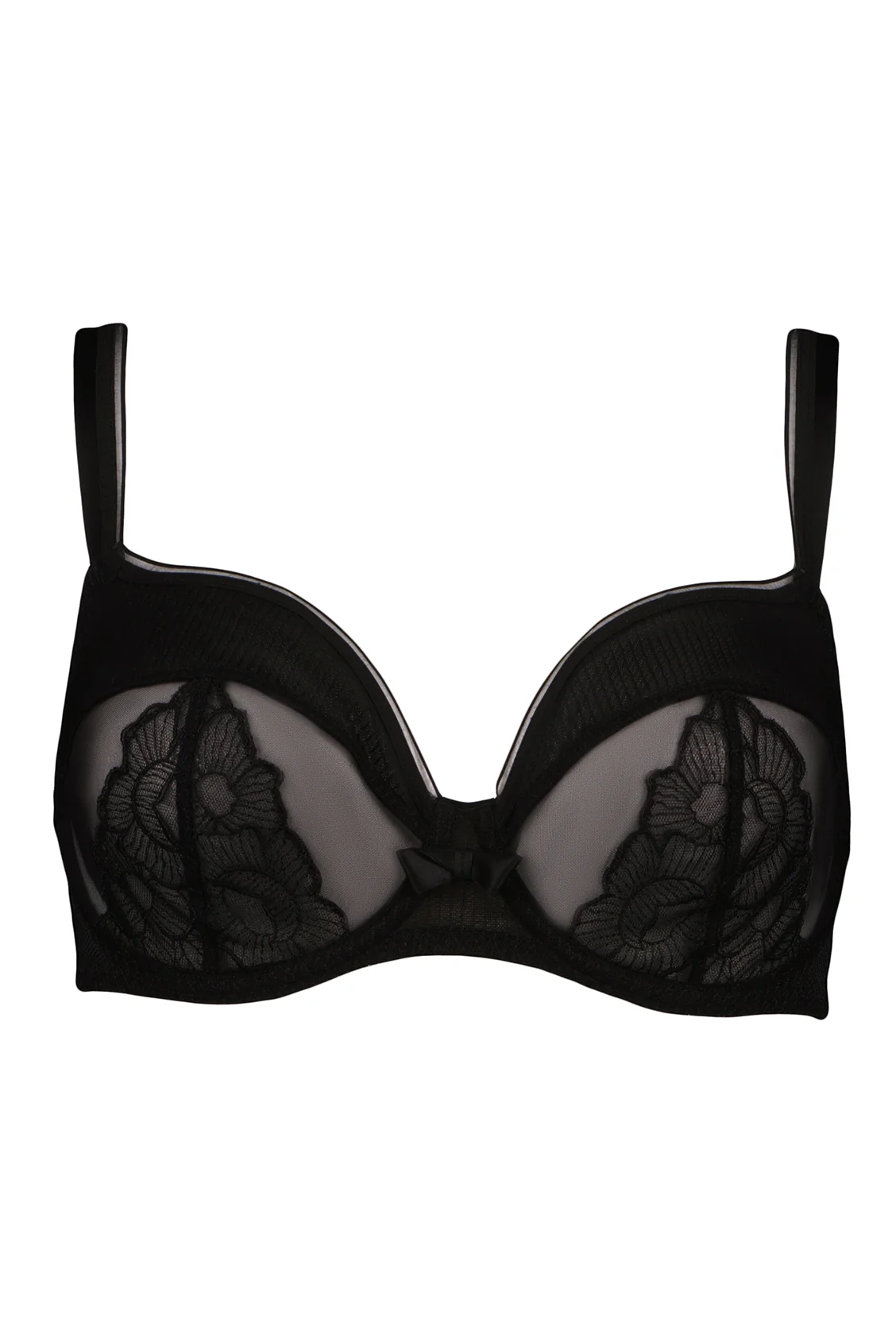 Un soutien-gorge corbeille avec armatures, pensé pour les poitrines généreuses, tout en féminité et au bien-aller maitrisé.