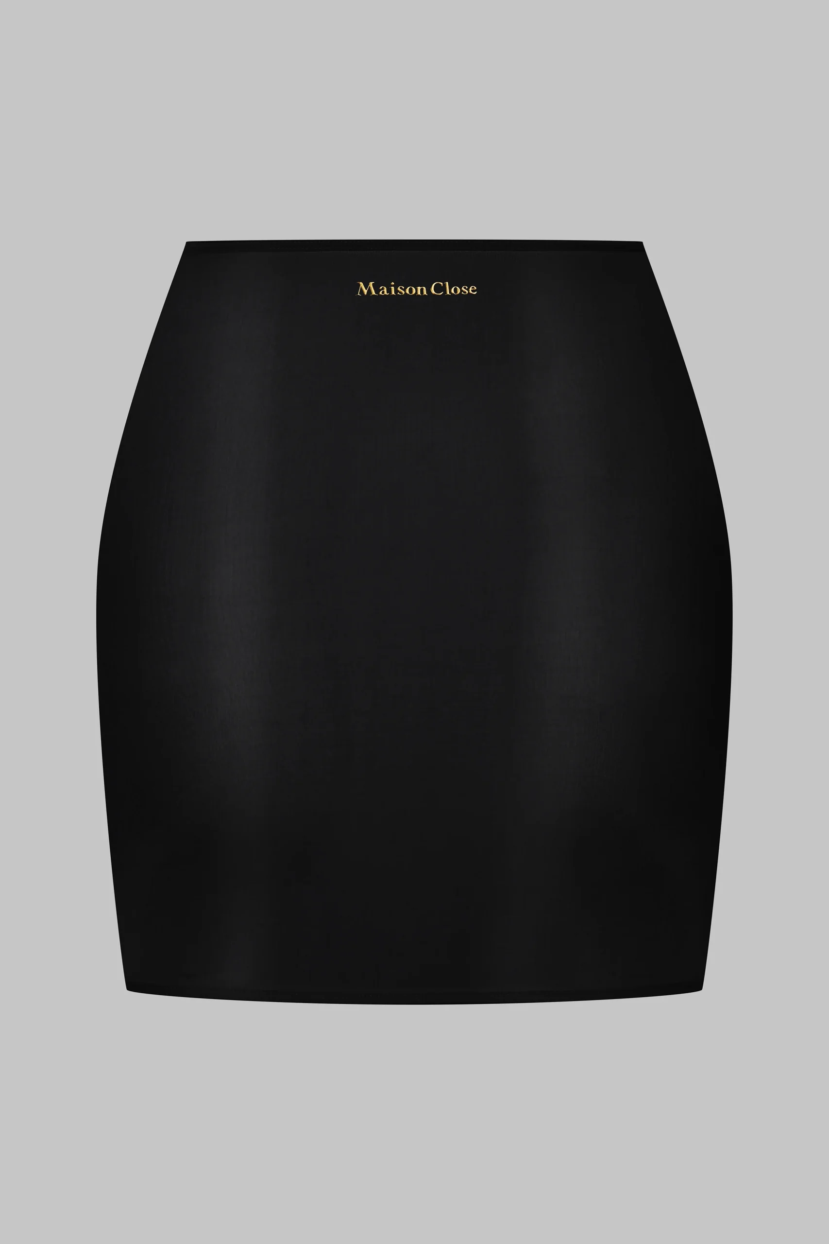 Jupe courte élaborée dans un jersey fin aux reflets brillants et subtilement transparents. Coupe ajustée bordée d’un élastique ultra plat et confortable à la taille. La signature dorée du logo Maison Close s’inscrit au dos.