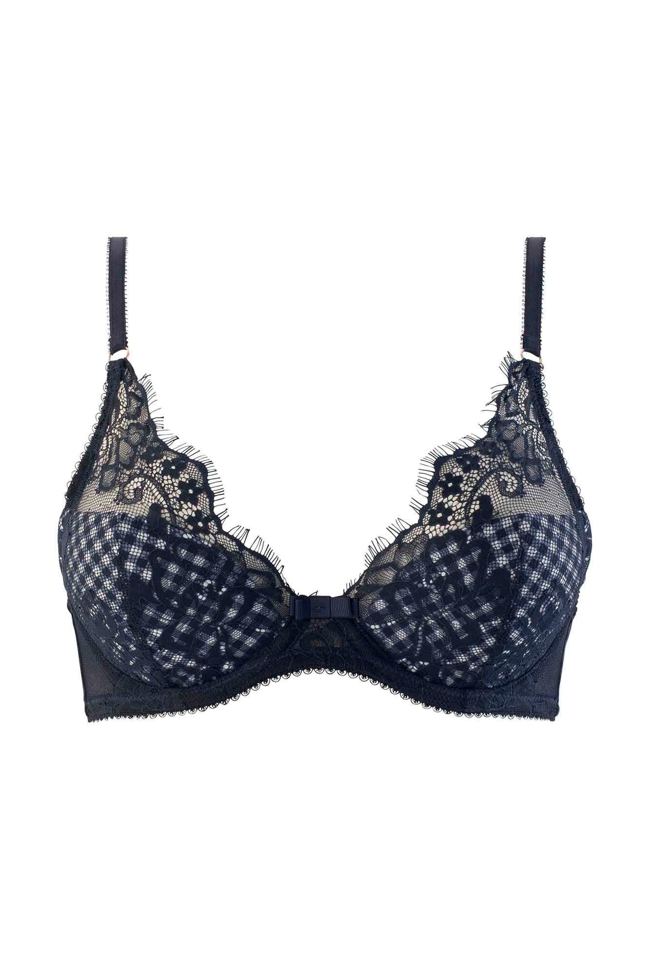 DESCRIPTION :Soutien gorge coquesDécolleté classiqueMicrofibre imprimée vichy recouverte de dentelle à effet de cilTulle plumetisNoeud graphique ruban gros-grain à l’entre bonnetsAnneaux mordorés aux bretellesMédaillon siglé BB sur l’aile droiteFermeture 2 agrafes, 3 positionsDisponible du 85B au 95C COMPOSITION :Dentelle : 100% PolyamideMatière secondaire : 92% Polyamide 8% ElasthanneMatière ajourée : 81% Polyamide 19% ElasthanneDoublure bonnet […]