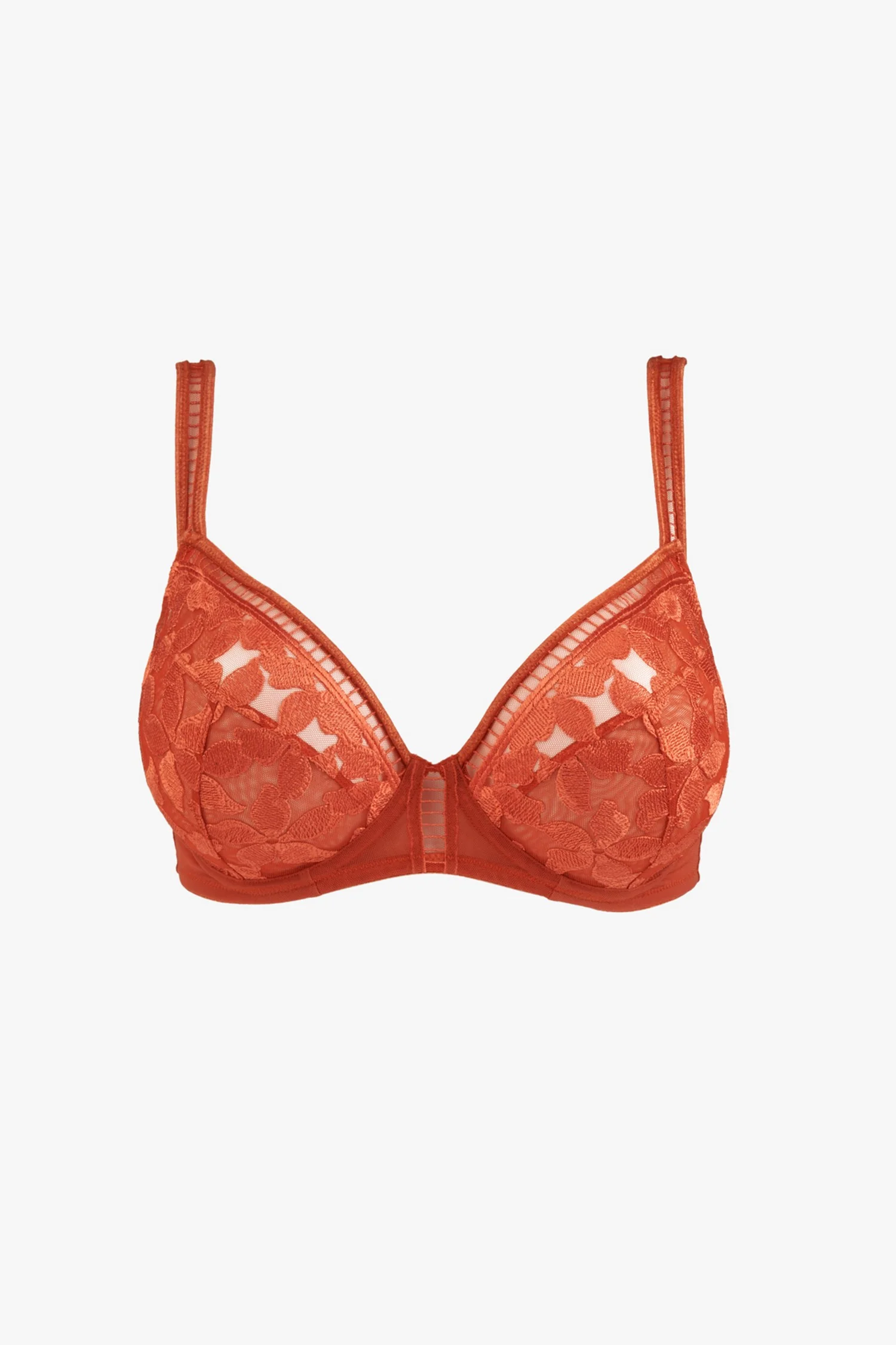 Un soutien-gorge avec armatures en broderie florale, alliant séduction et modernité, imaginé spécialement pour les poitrines généreuses.