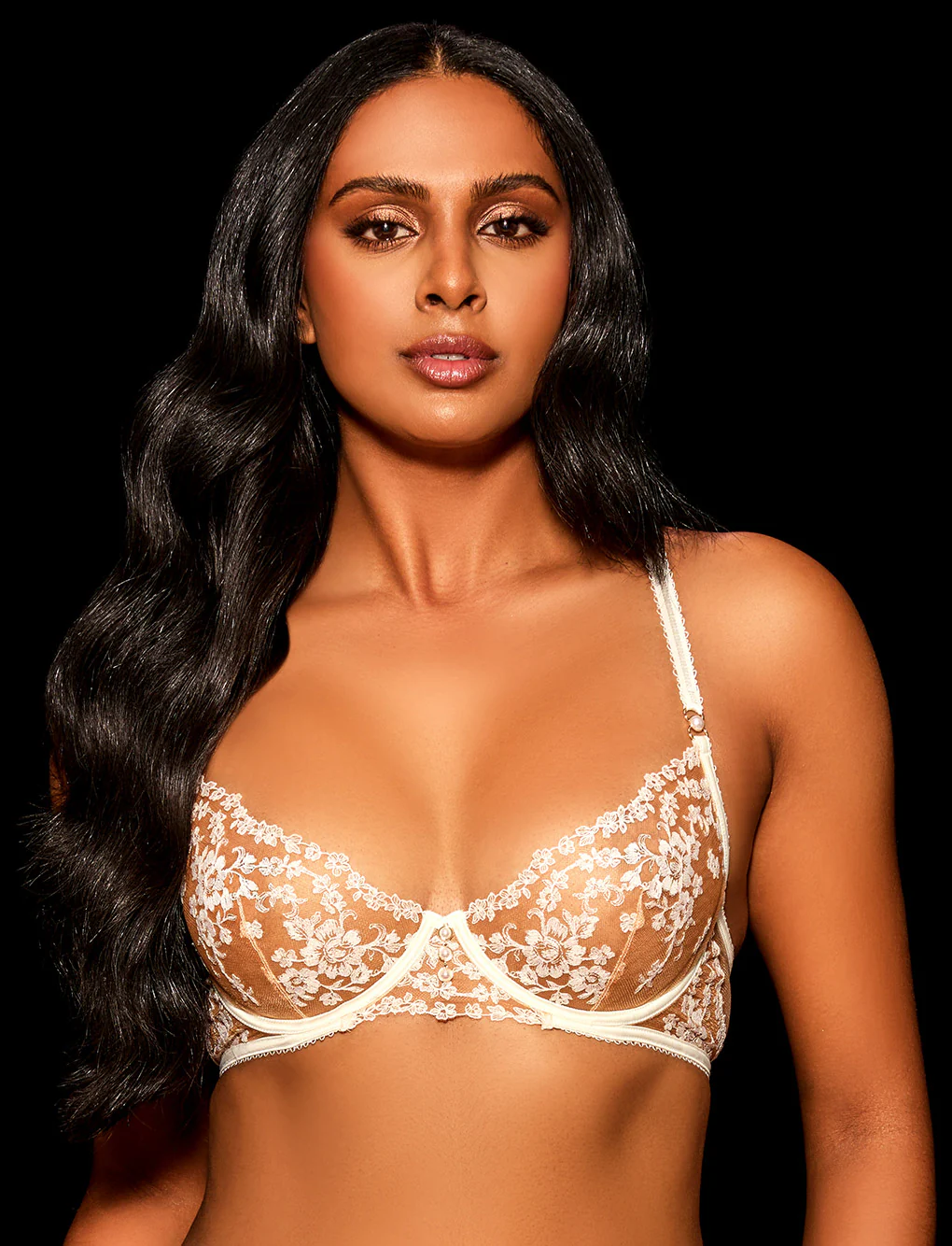 Luxe embroidery and lustrous pearls, this dreamy lingerie set is naughtier than she looks! The must-have Maisie collection features allover embroidery on illusion tulle, framed in elastics with double picot trims. As pristine as the pearls that gracefully adorn her, Maisie is further detailed with triple pearl pendants and custom-made slides.