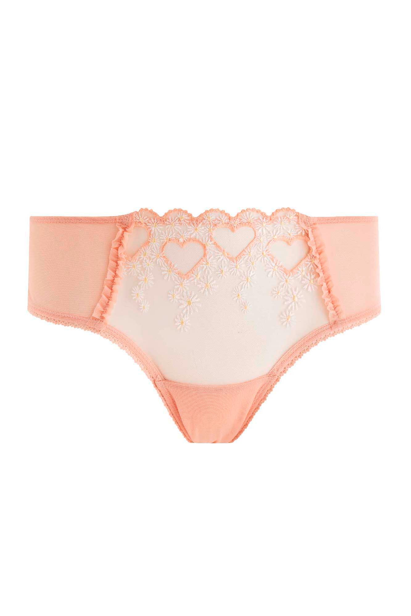 Shorty tanga en tulle brodé motif cœur et petites marguerites et tulle