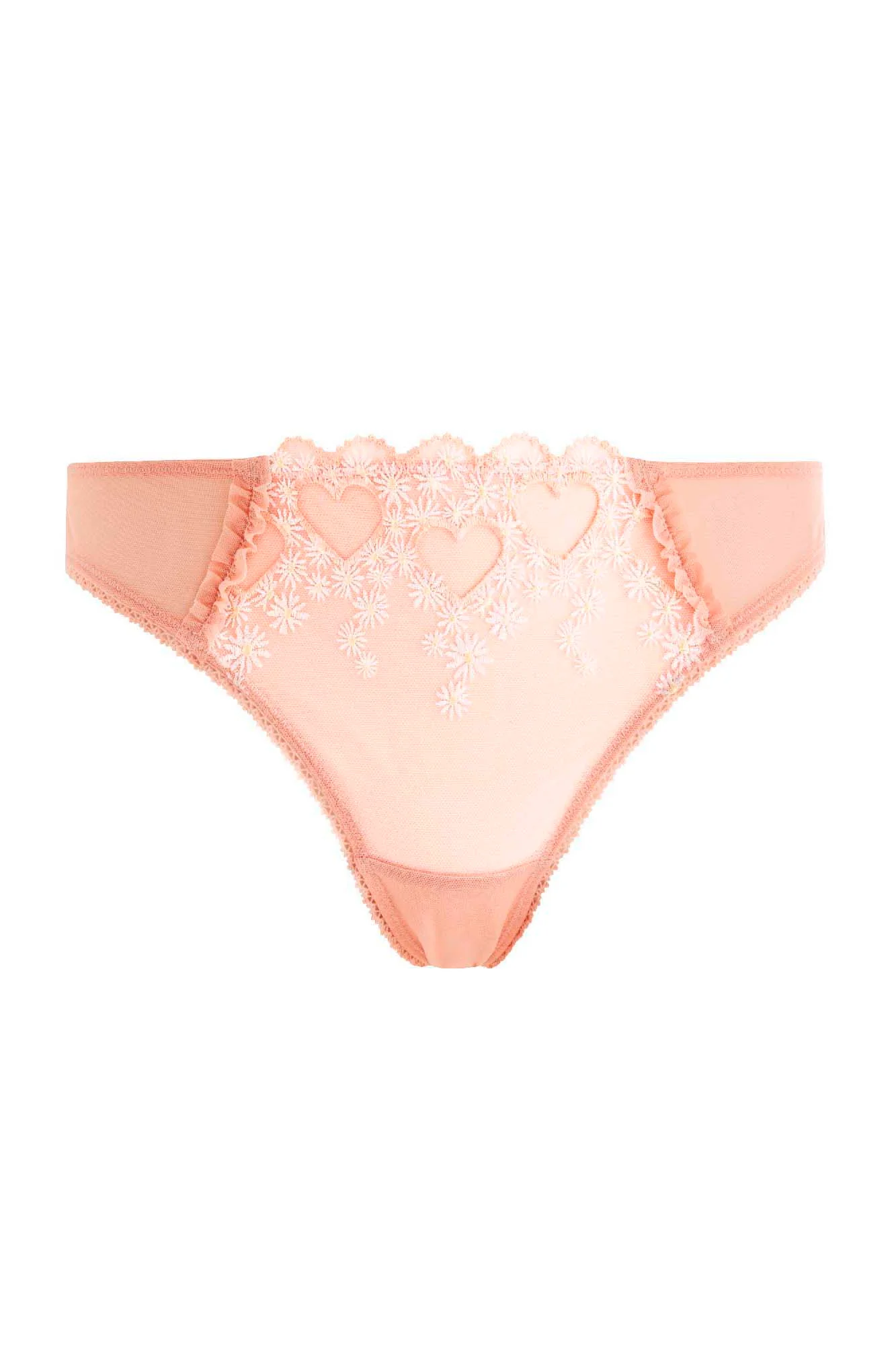 Tanga en tulle brodé motif cœur et petites marguerites et tulle