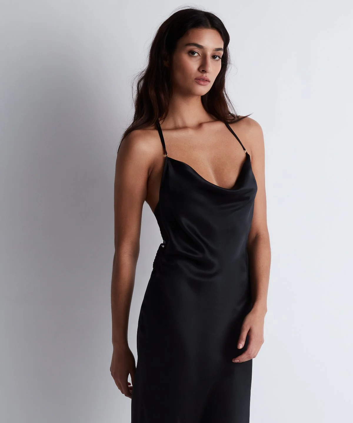 Inspirée de l’âge d’or du glamour, la nuisette longue Midnight Storm déploie jusqu’aux pieds sa soie fluide et douce, pensée pour suivre les mouvements du corps. Dans le dos, une découpe graphique sculpturale réhausse un empiècement en tulle agrémenté d’une broderie ondulée très sexy qui révèle le creux des reins.