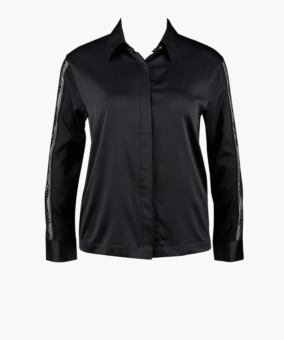 Conçu pour être porté de jour comme de nuit, le chemisier Midnight Whisper se prête à toutes les occasions. Entièrement en soie brillante et sensuelle, il se pare d’un élégant boutonnage rehaussé par un bouton doré sur le col. Sur les manches, des empiècements en dentelle sexy dévoilent la peau.