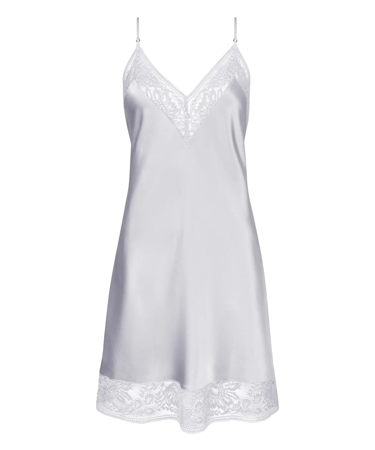 Pensée pour suivre les mouvements du corps, la nuisette Midnight Whisper habille le buste de sa soie stretch élégante. Offrant un décolleté profond souligné par une dentelle ajourée sexy, elle révèle un dos largement ouvert qui dévoile la peau jusqu’au creux des reins pour une allure entre séduction et raffinement.