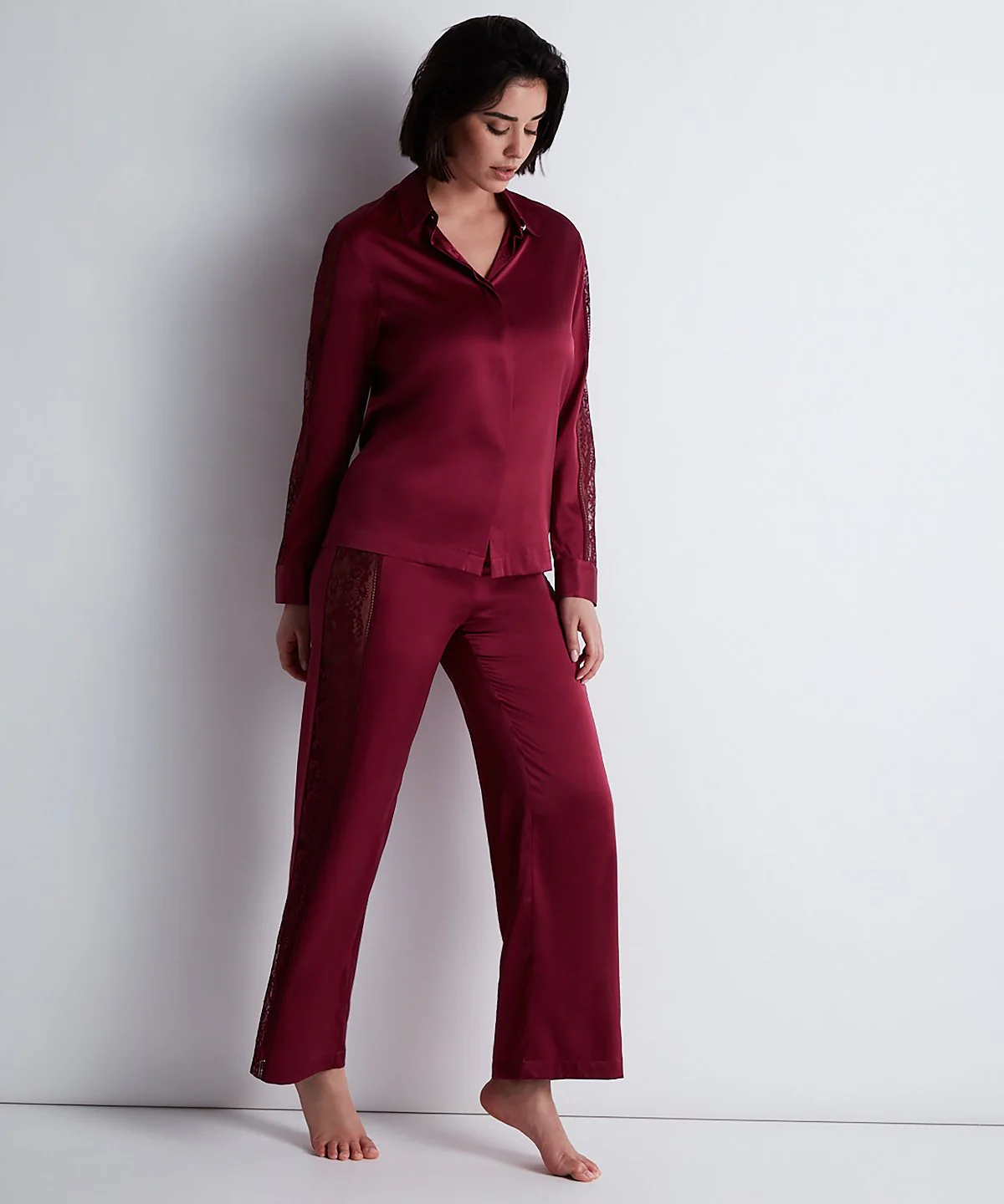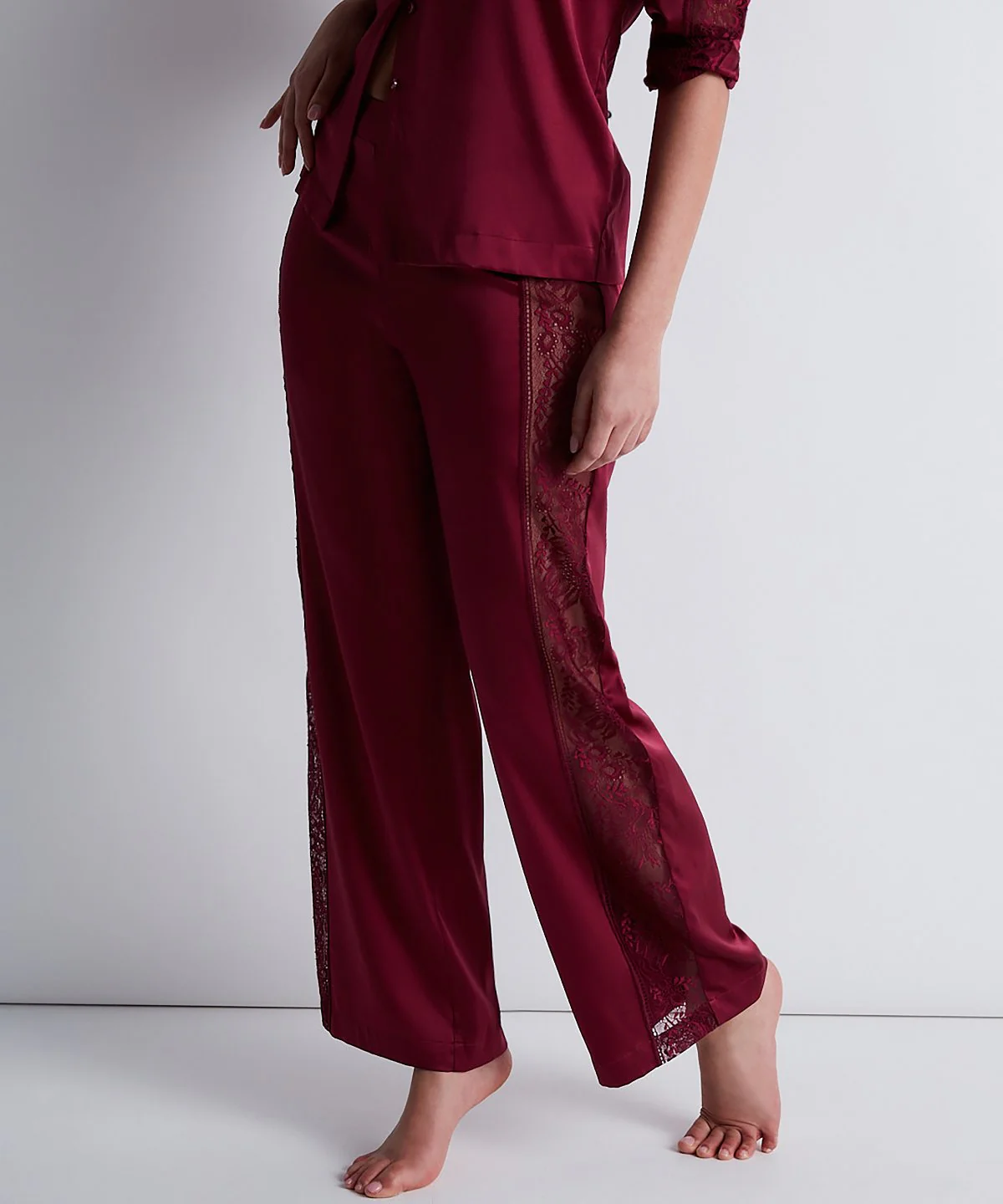 Entièrement en soie stretch pensée pour suivre les mouvements du quotidien, le pantalon Midnight Whisper offre une coupe ample, confortable et fluide, très agréable à porter de jour comme de nuit. Sur les côtés, des empiècements en dentelle très sexy dévoilent la peau pour un effet jambes interminables résolument sensuel.