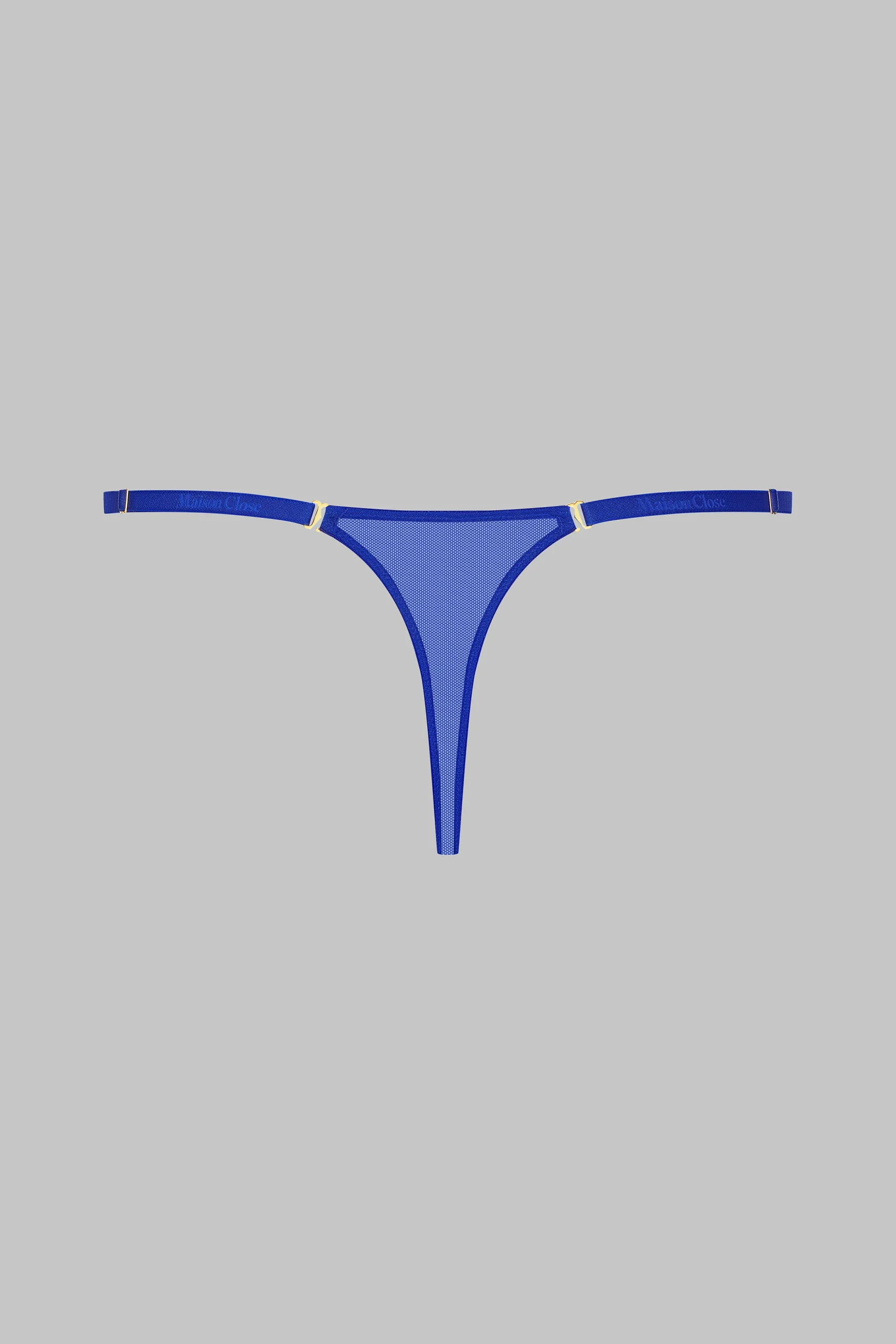 Le mini string au coloris néon se pare d’un tulle doux à la transparence irisée.