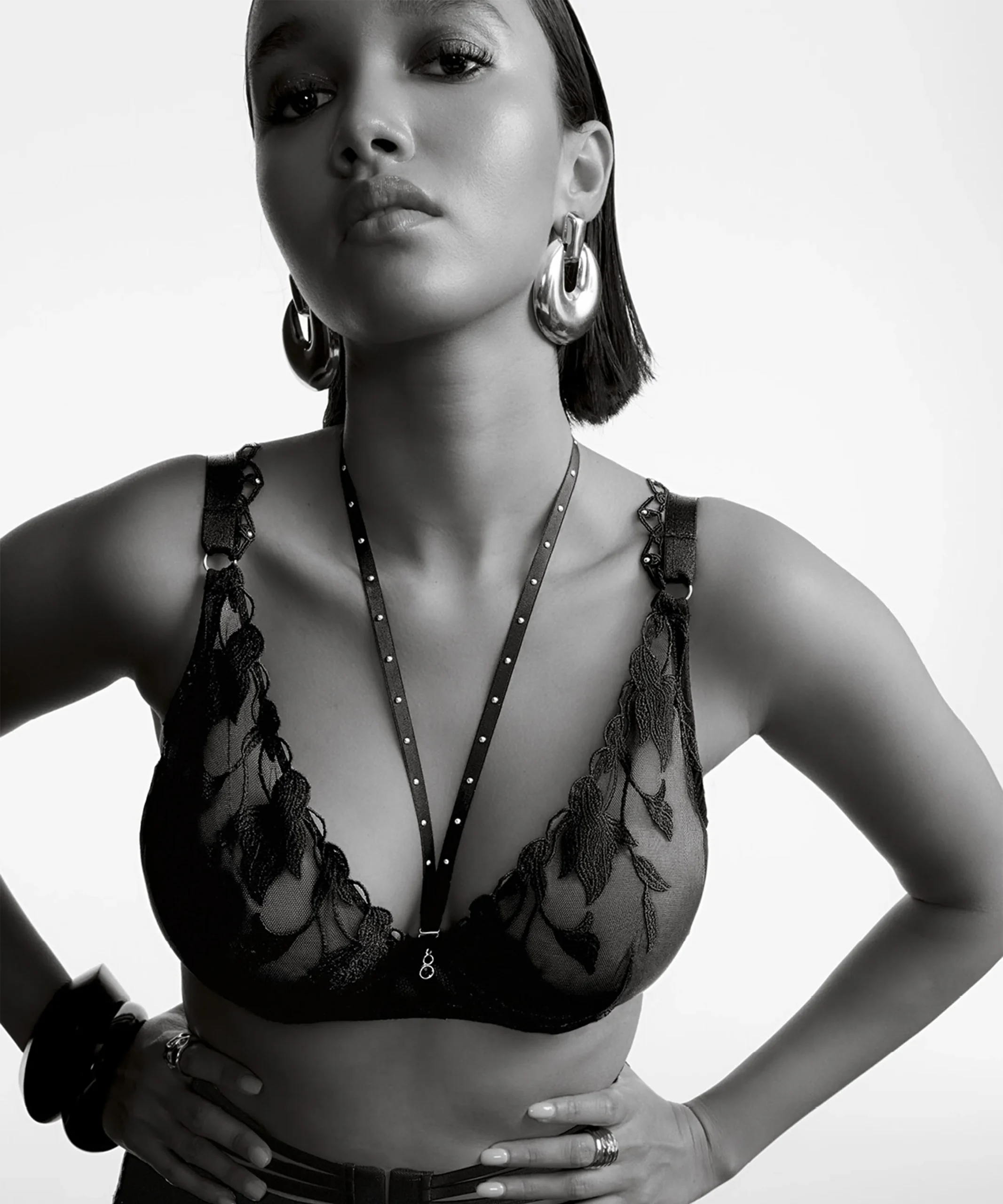 Tout en transparence sexy, le soutien-gorge triangle armatures Night At Paradise associe une broderie aux motifs floraux résolument modernes et un tulle délicat dans une forme confortable. Offrant une allure subtilement sophistiquée, il déploie une guipure graphique sur les bretelles et habille le décolleté d’un collier amovible avec clous dorés.