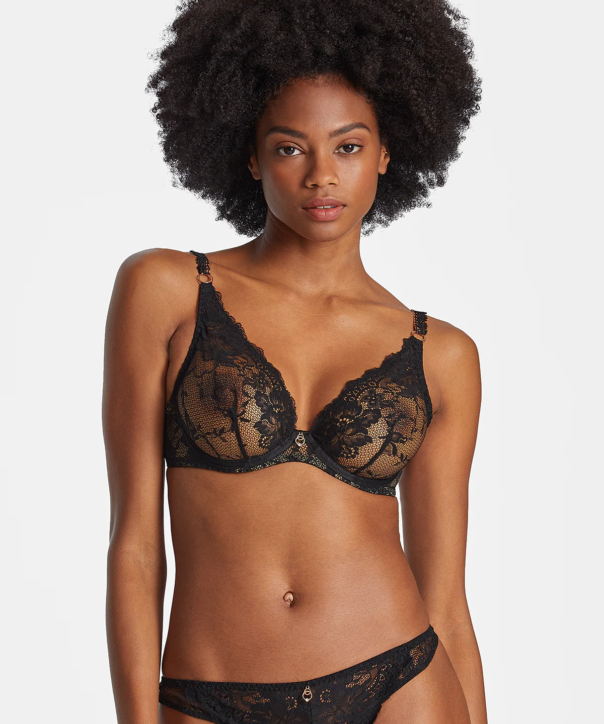 Disponible jusqu’au bonnet F pour un décolleté plongeant et un maintien optimal quelles que soient la forme et la taille de la poitrine, le soutien-gorge triangle armatures Night Bird déploie sa dentelle aux fleurs opulentes sur un fond résille noir intense devant et offre, derrière, un motif guipure amovible exclusif qui se laissera volontiers dévoiler sous un dos nu pour une allure sexy, audacieuse et élégante.