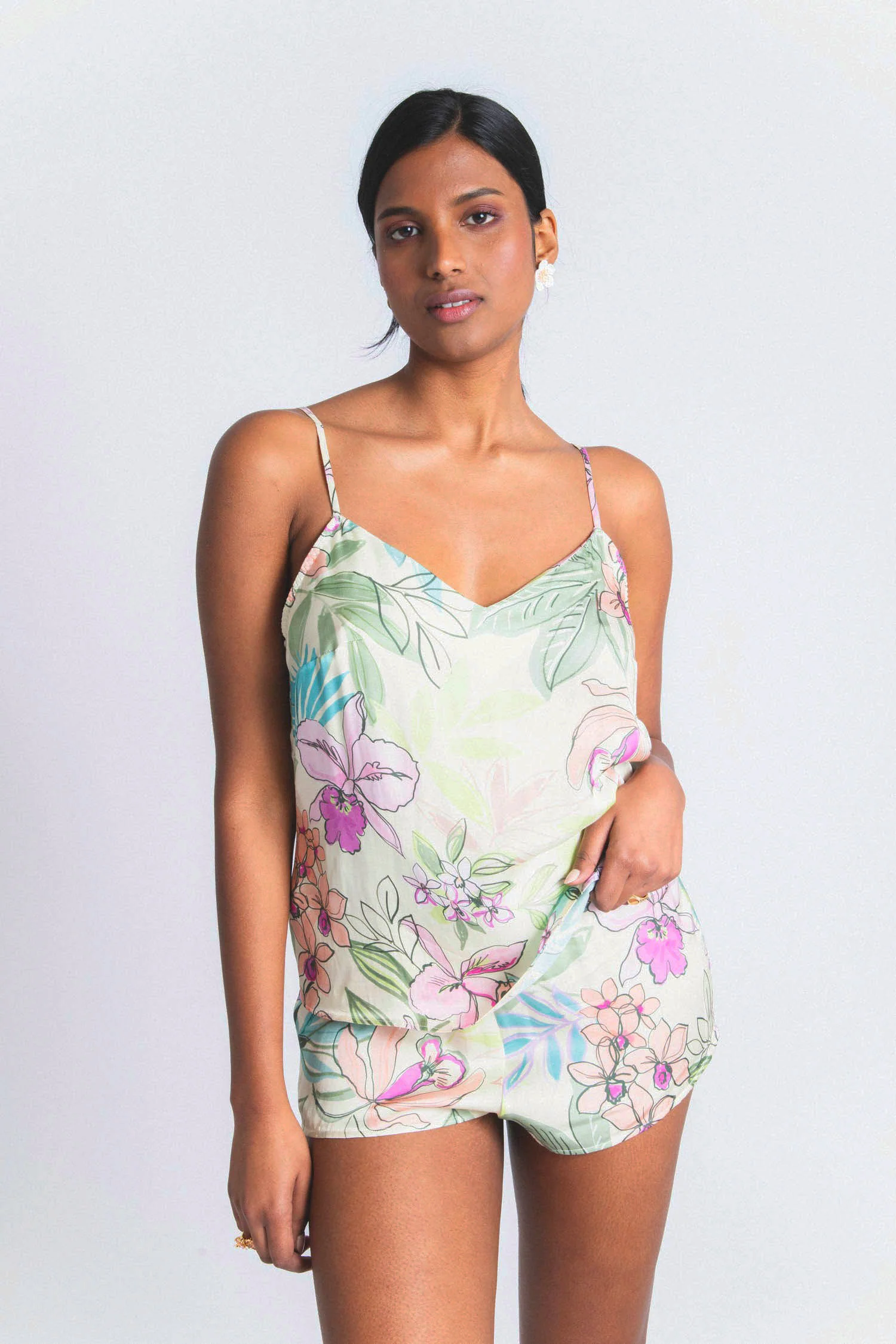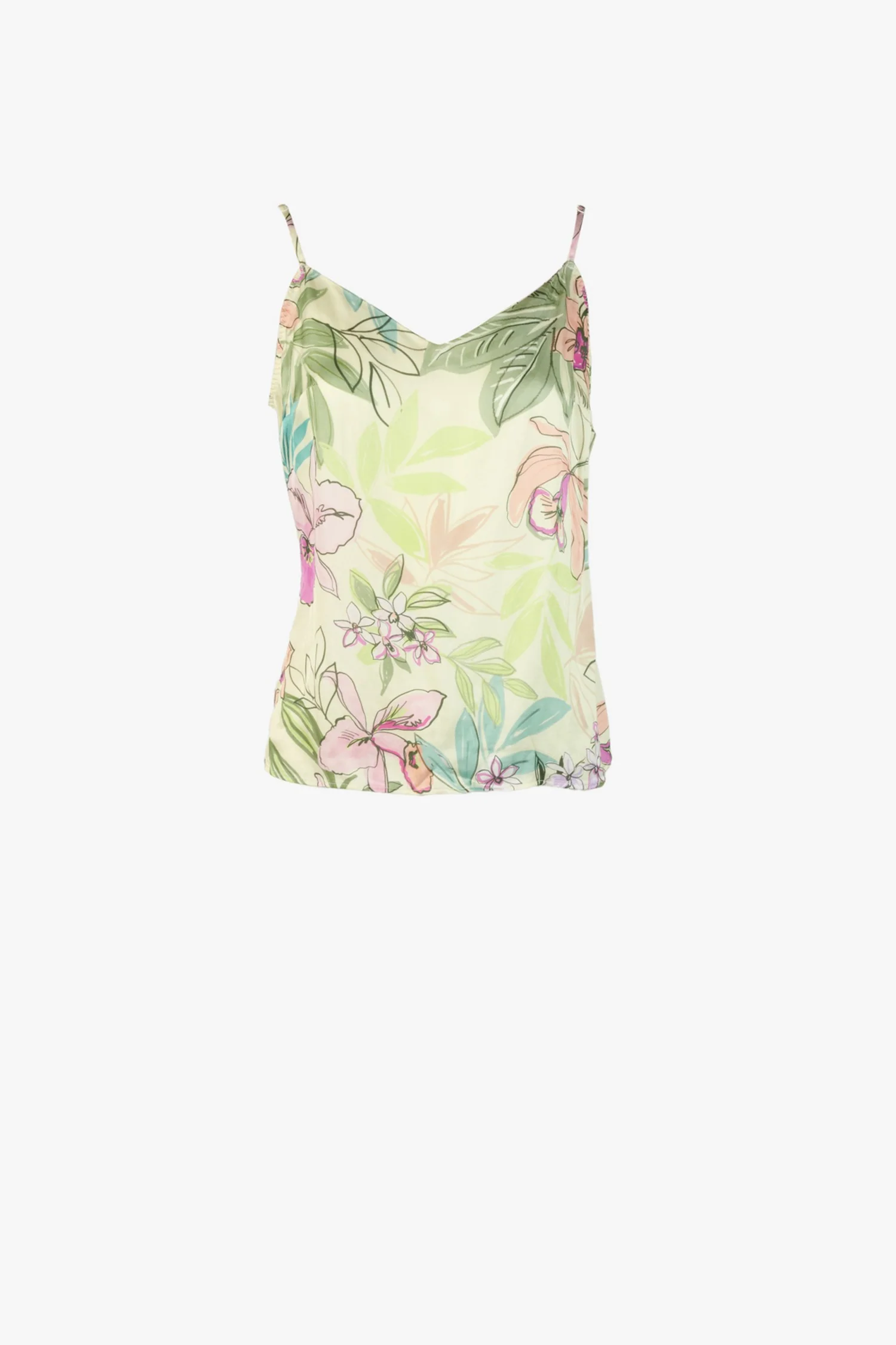 Un top imprimé sur fond jaune pâle, chic et confortable, à porter de jour comme de nuit.