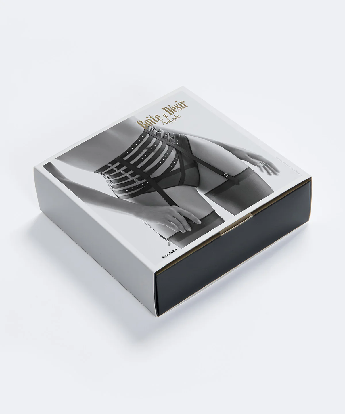 Ce spectaculaire serre-taille complète avec brio la collection capsule Rencontre Anonyme. Plus large que le porte-jarretelles, il sublime la taille telle un amour pris en cage, les mille lanières très graphiques serties de clous métallisés sont autant d’invitations aux ébats amoureux, dans une rencontre du corps qui confine à l’érotisme. Les spécificités du serre-taille Rencontre […]