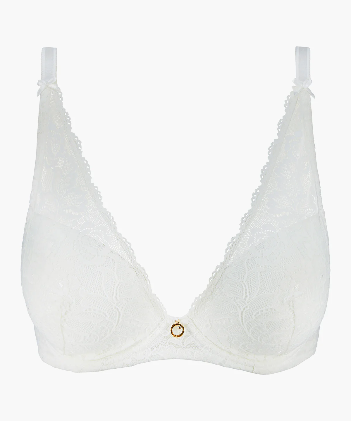 Tout en contraste entre opacité et transparence, le soutien-gorge plunge foulard Rosessence présente une dentelle remontant haut sur la poitrine pour en souligner le galbe et offrir un décolleté très sexy. Derrière, le dos adopte une ouverture en « tour Eiffel » qui assure confort et maintien au quotidien.