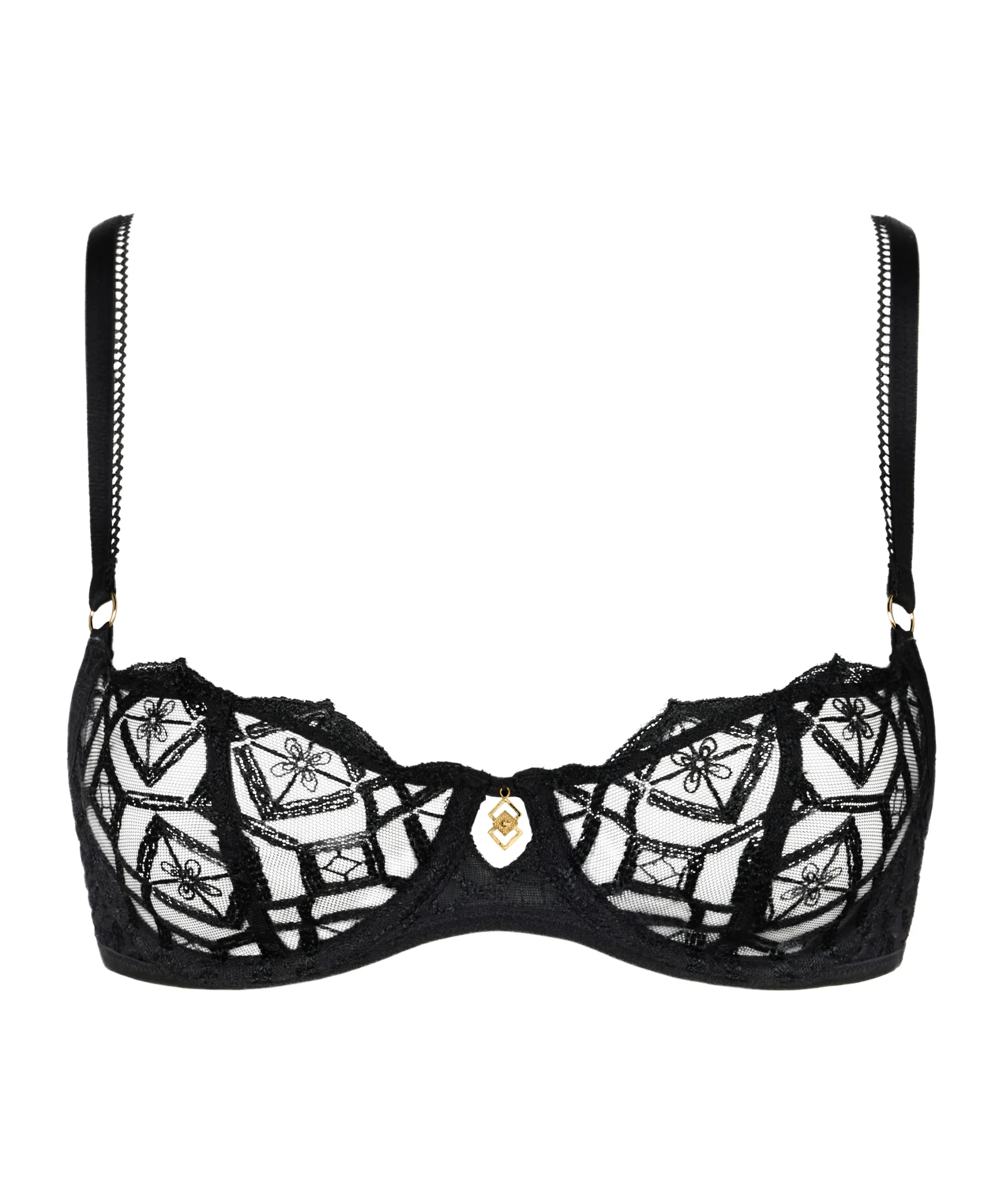 Offrant un décolleté ouvert à la fois structuré et sexy, le soutien-gorge corbeille armatures Sense of Illusion galbe et rehausse subtilement la poitrine. Mise en lumière par de subtils détails dorés, sa broderie hypnotique dessine des lignes sensuelles et résolument modernes, tout en assurant un confort et un maintien absolus.
