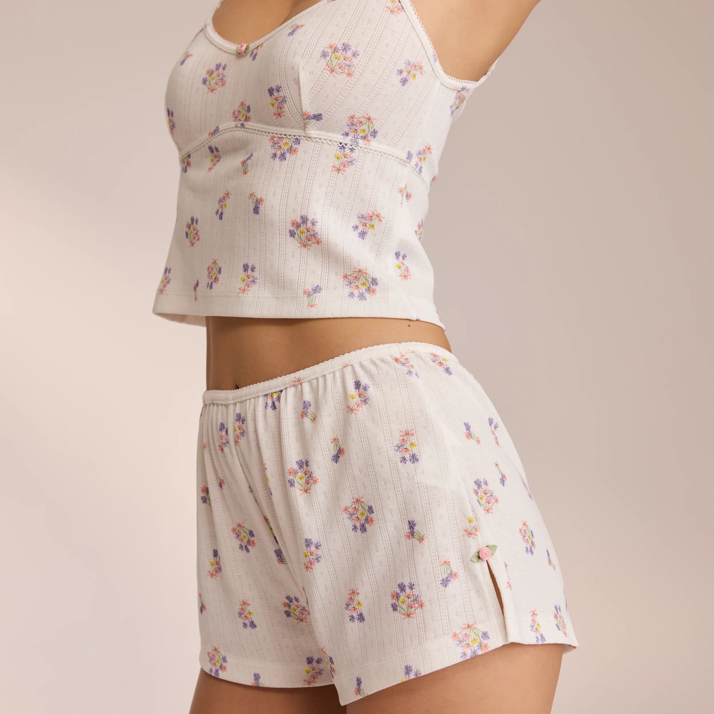 - Short de pyjama en pointelle avec ceinture élastique à picots