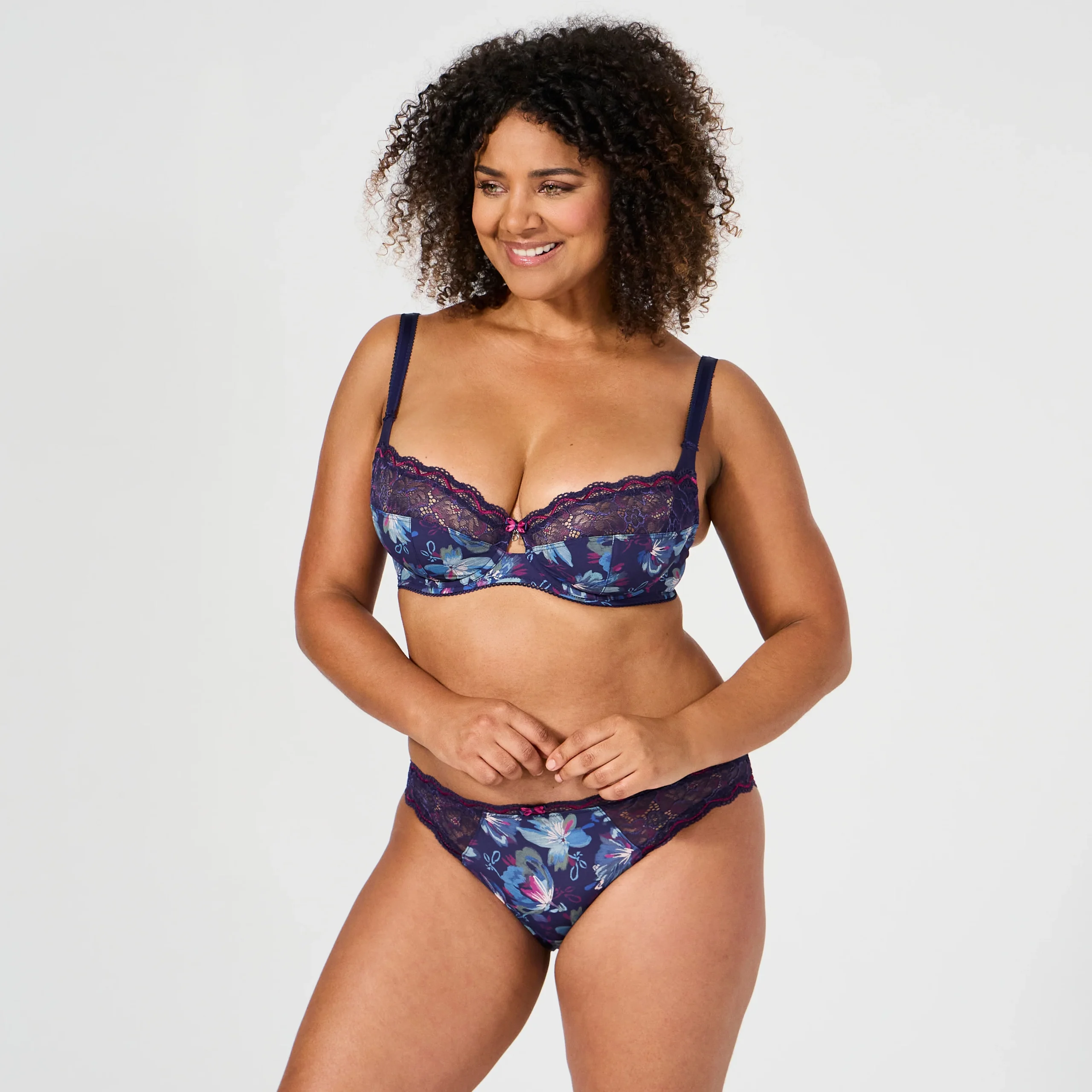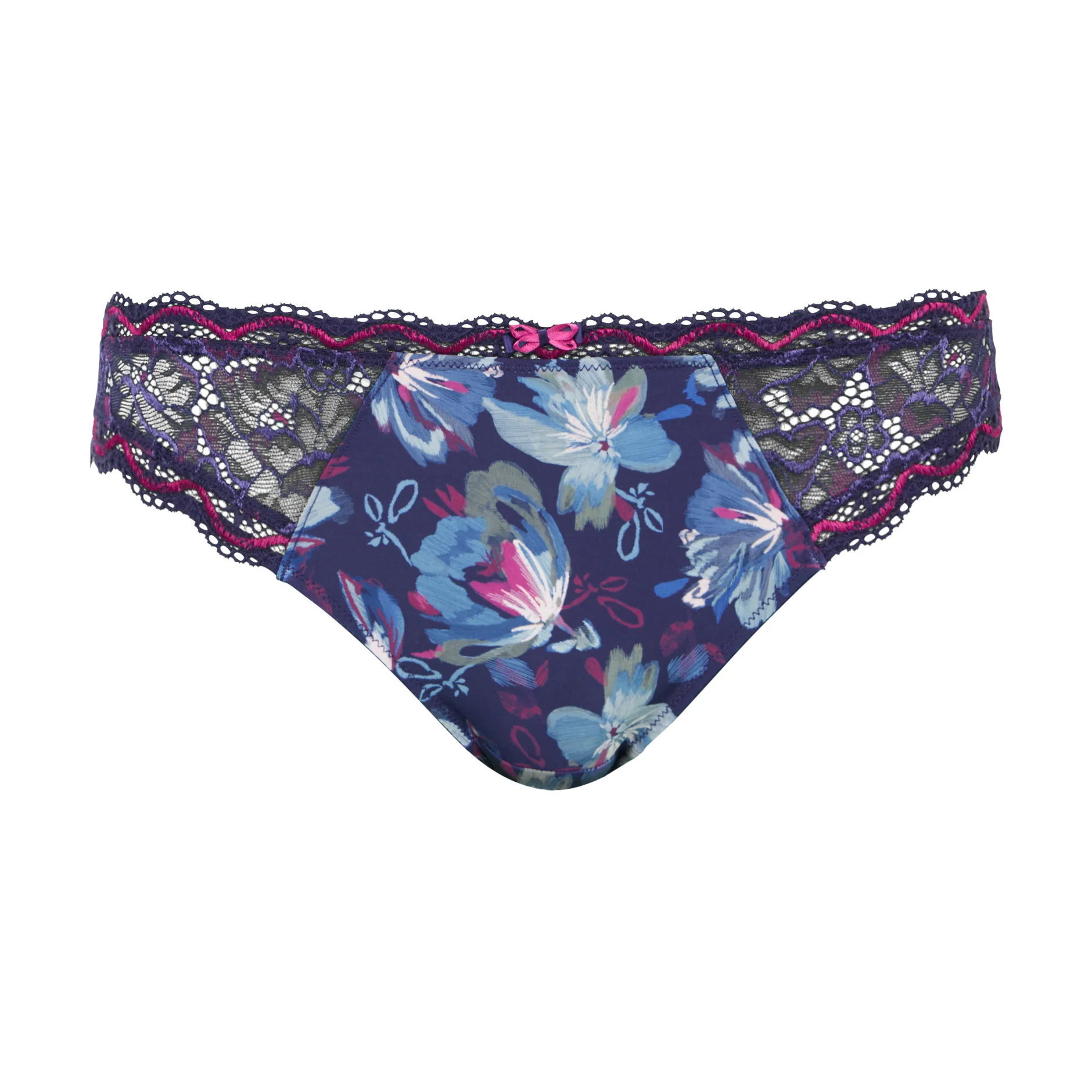 • Mélange entre une dentelle douce légèrement brillante en version bicolore et une maille microfibre avec un imprimé exclusif
