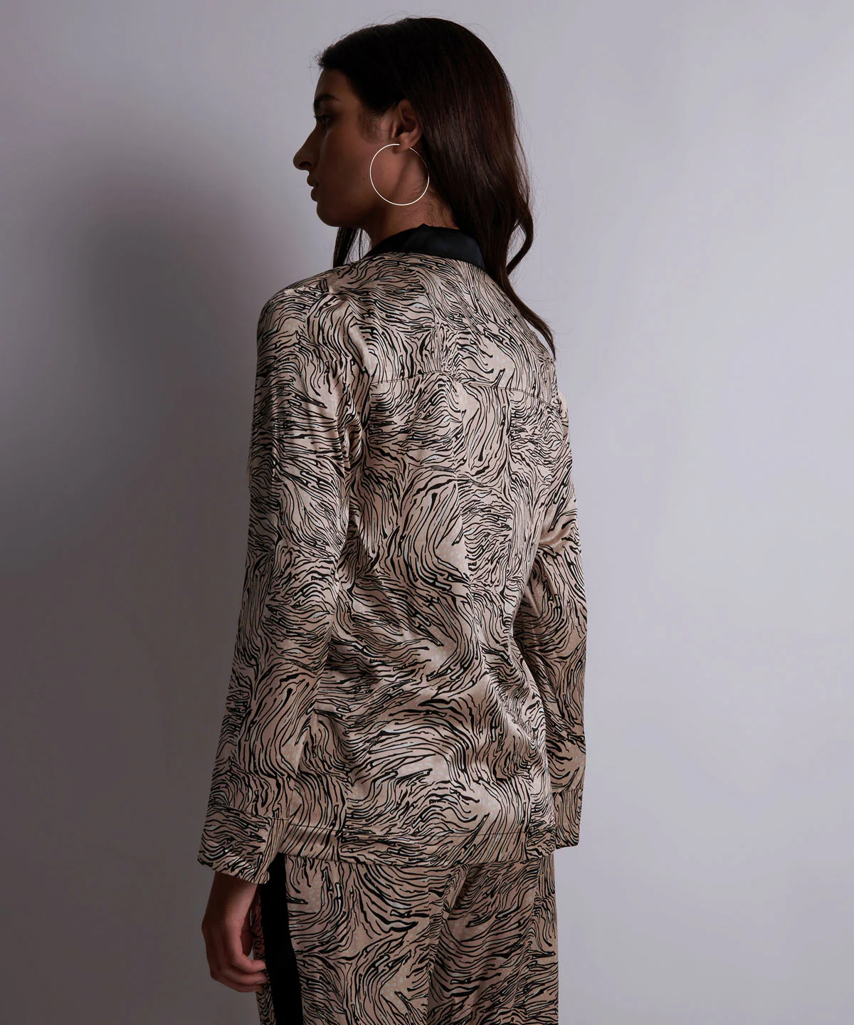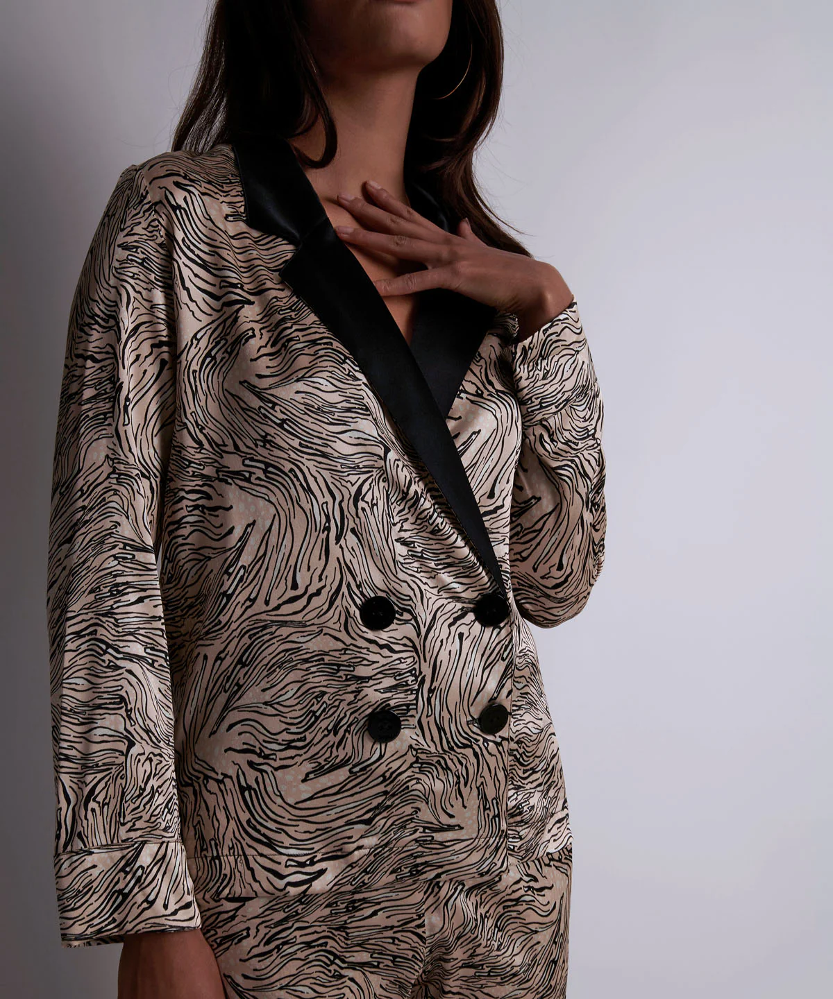 • L’ensemble pyjama (chemisier + pantalon) pour un total look smoking à la fois chic et moderne