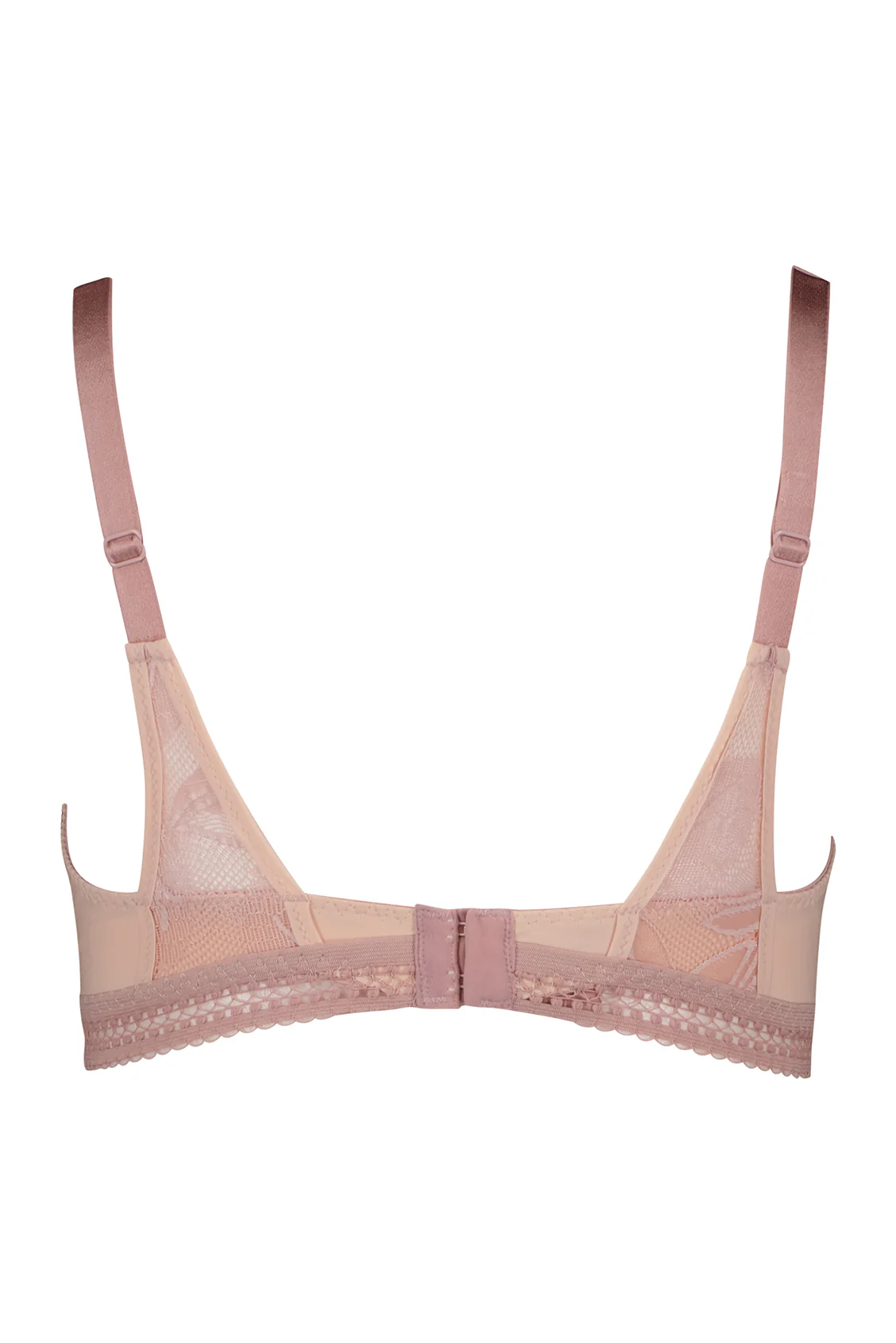 Un soutien-gorge triangle souple, sans armatures, en dentelle française et au dessin floral : un intemporel moderne et féminin.