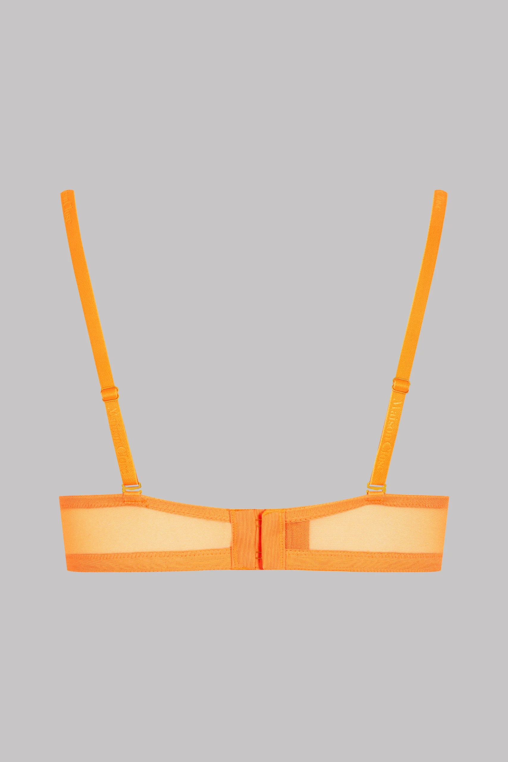 Le soutien-gorge balconnet au coloris néon se pare d’un tulle doux à la transparence irisée. Ses armatures garantissent un maintien optimal de la poitrine. Fermeture au dos par un agrafage confortable.