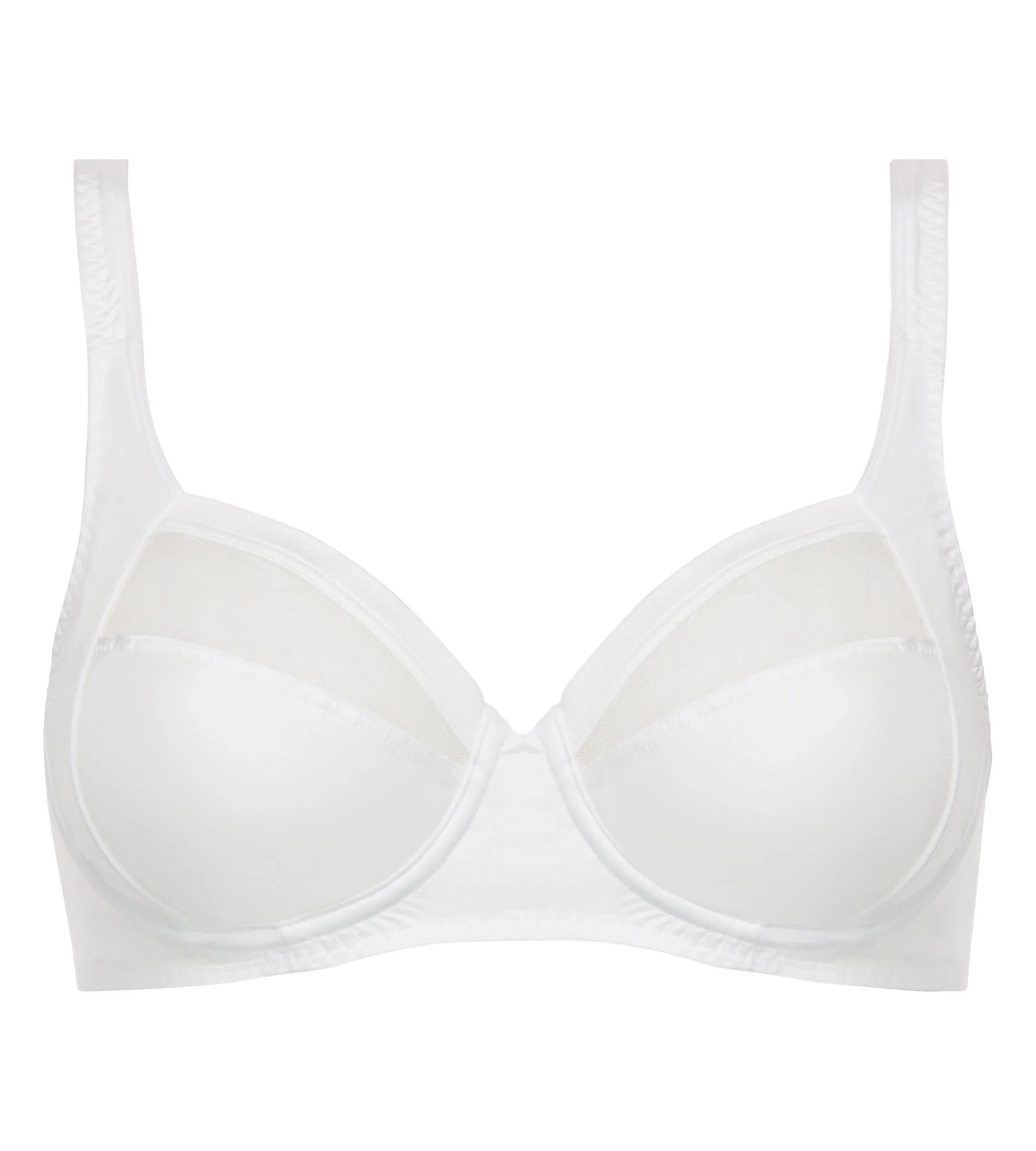 Le soutien-gorge emboîtant avec armatures blanc de la ligne Perfect Silhouette assure un maintien optimal. Ses empiècements de tulle disposés en haut des bonnets apportent féminité et modernité au soutien-gorge. Ce sous-vêtement est idéal pour toutes les poitrines grâce à sa structure en dos nageur et ses larges bretelles.