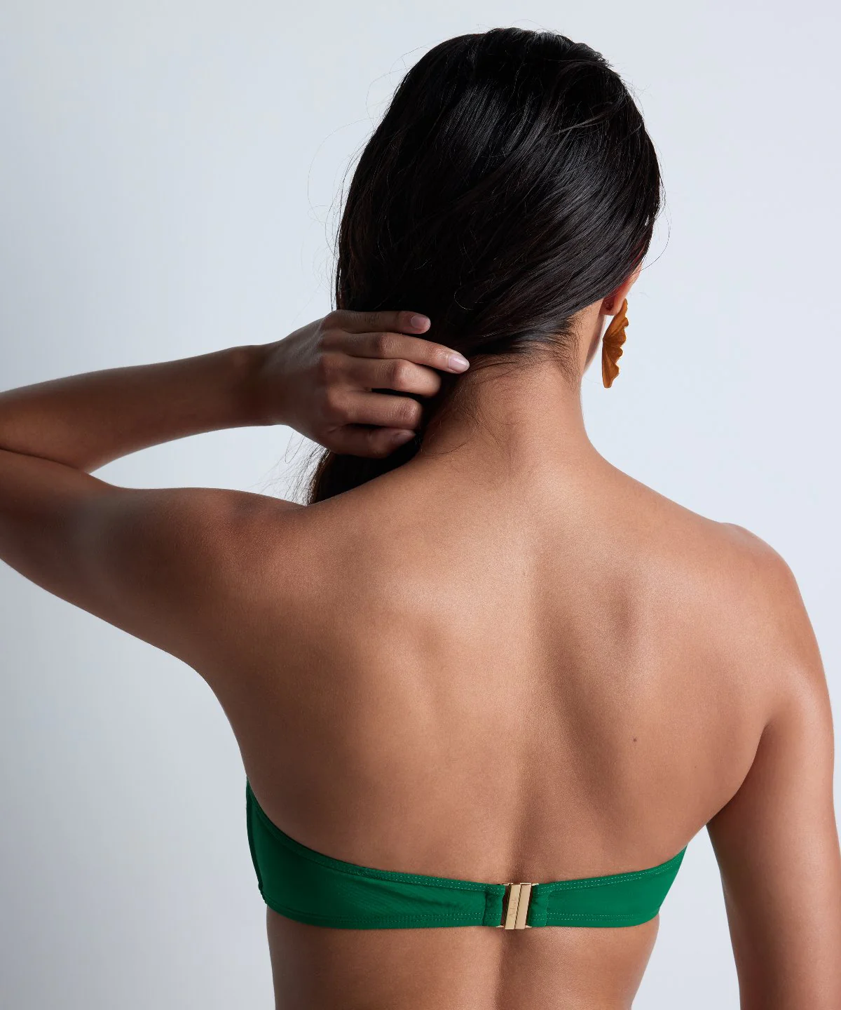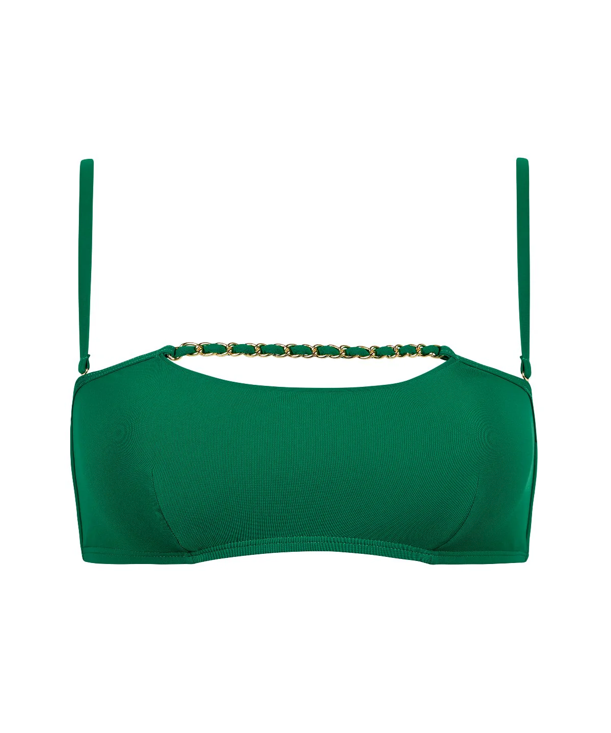 Offrant une coupe droite sobre et élégante, le haut de maillot de bain bandeau souple Sparkling Treasure se pare d’un décolleté arrondi très sexy, surmonté par une chaînette dorée entrelacée. Avec ses bretelles amovibles et sa matière recyclée extensible, ce modèle versatile et confortable se plie à toutes les envies.
