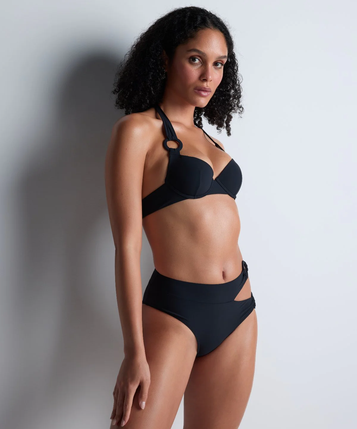 - Coques intégrées sur le haut de maillot de bain plunge coque avec un push-up dégressif lorsqu’on monte en taille pour plus de confort et un porté avec bretelles en tour de cou