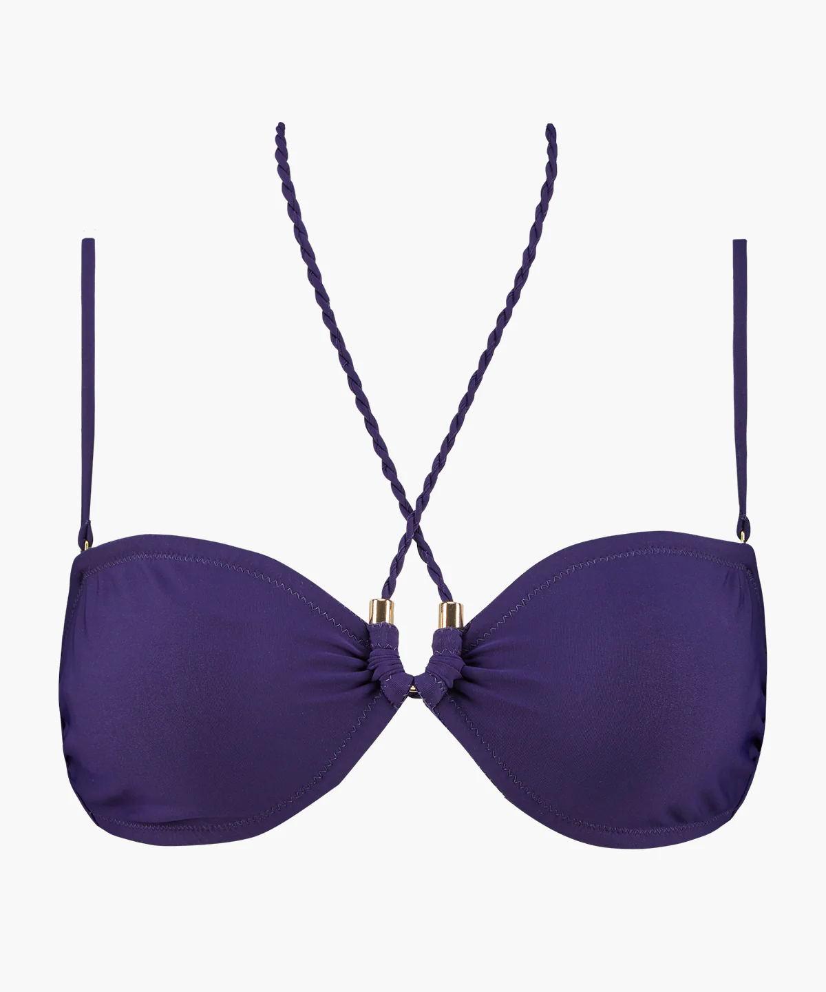 - Forme bandeau avec coques amovibles, lien tressé en tour de cou et bretelles droites amovibles