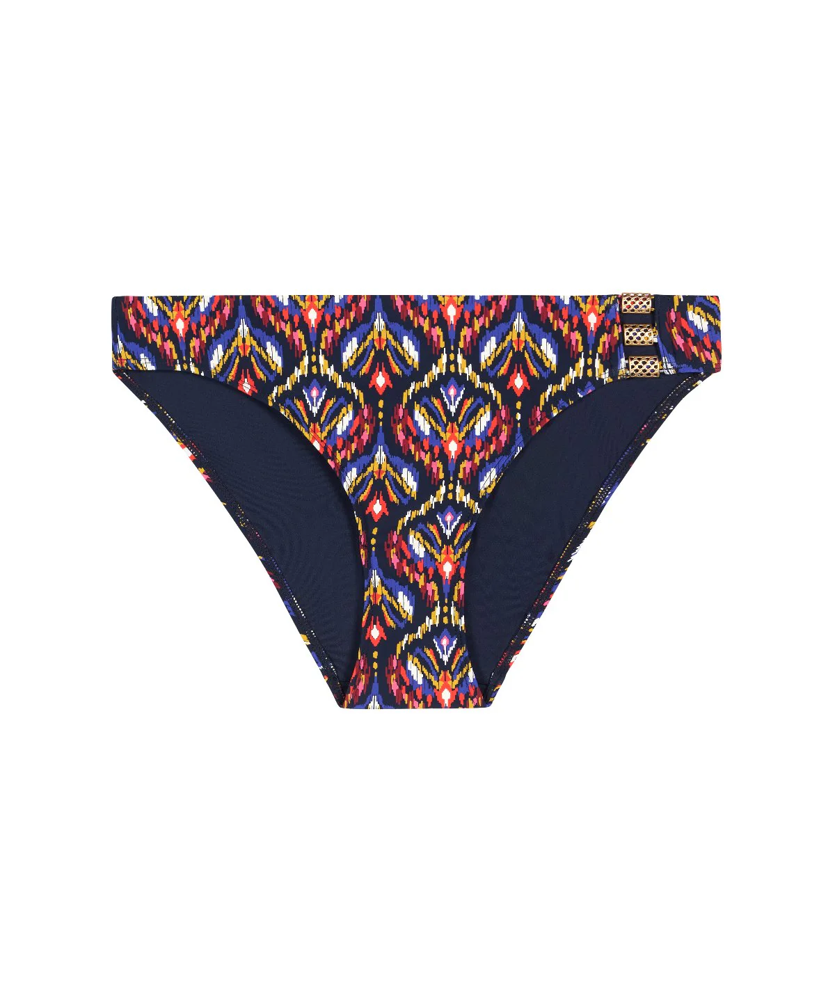 Forme culotte confortable et couvrante, devant comme dans le dos, le bas de maillot de bain brésilien Sunkissed Allure se pare d’une matière recyclée douce, très agréable à porter. Sur la hanche, un jeu sexy d’ouvertures agrémentées de barrettes or mat laisse entrevoir la peau pour une sensualité tout affirmée.