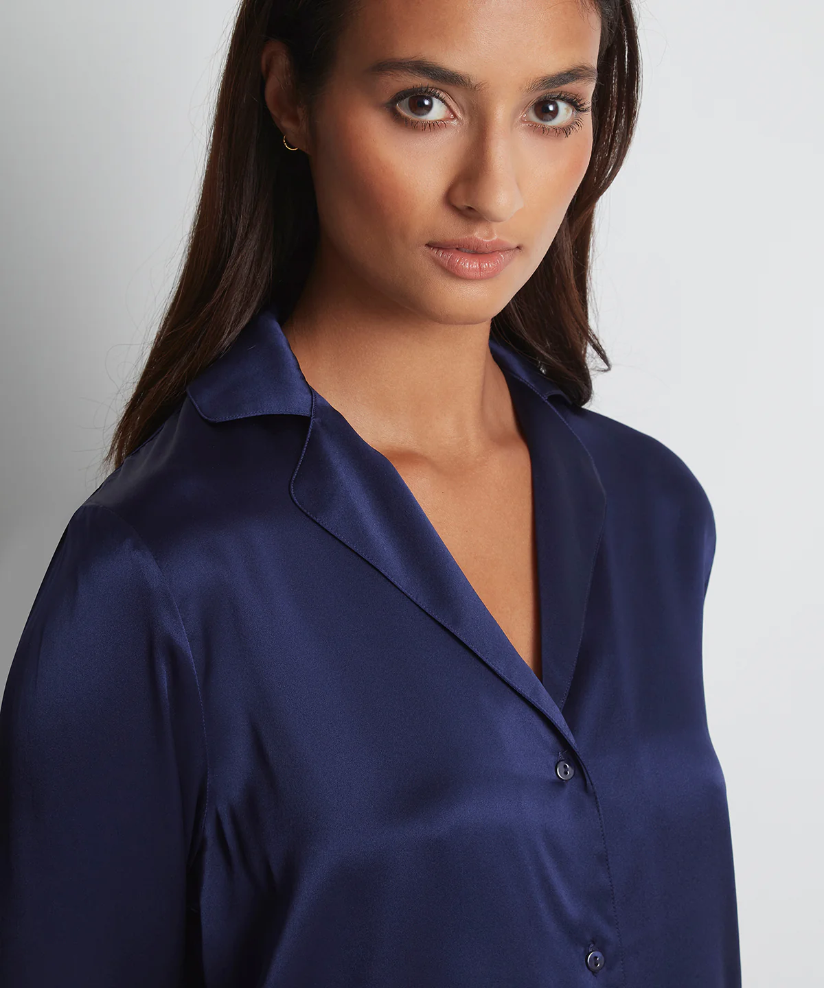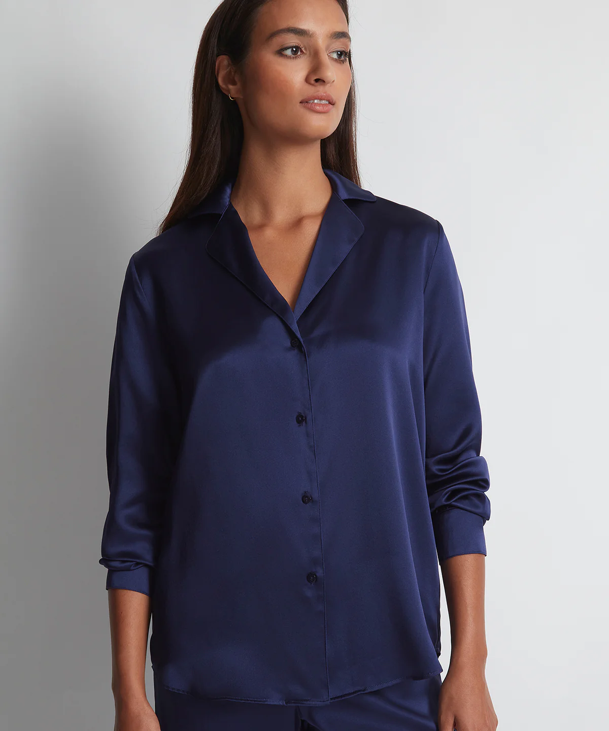 Entièrement conçu dans une soie fluide, douce et raffinée, le chemisier Toi Mon Amour présente une forme intemporelle et élégante, rehaussée par un nouveau coloris bleu nuit intense et lumineux. Pouvant se porter de nuit avec l’un des bas de la même collection ou de jour, y compris pour aller travailler en tout confort, il est un incontournable de tous les dressings.