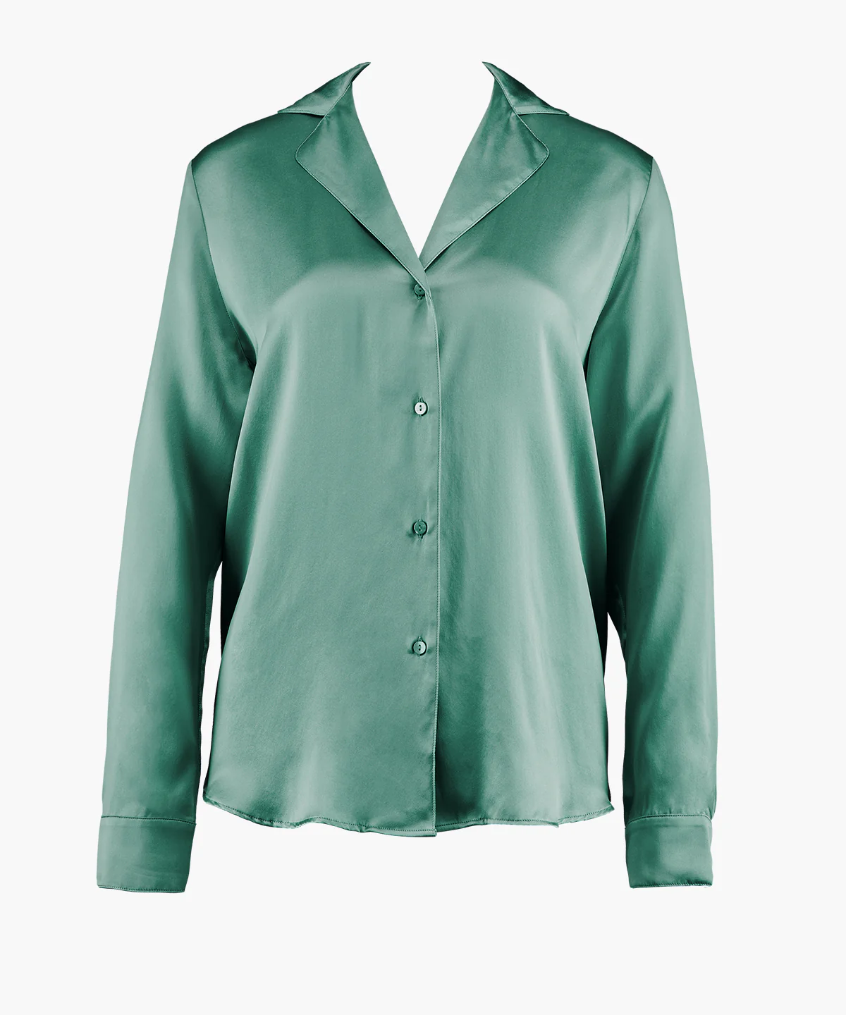 Le chemisier Toi mon Amour est taillé dans une soie fluide et légère, en pièce de lingerie ou de prêt-à-porter. La coupe cintrée dessine délicatement les courbes pour se marier parfaitement avec les autres lignes de corseterie. Les manches longues apportent du confort et s’achèvent en une finition soyeuse.