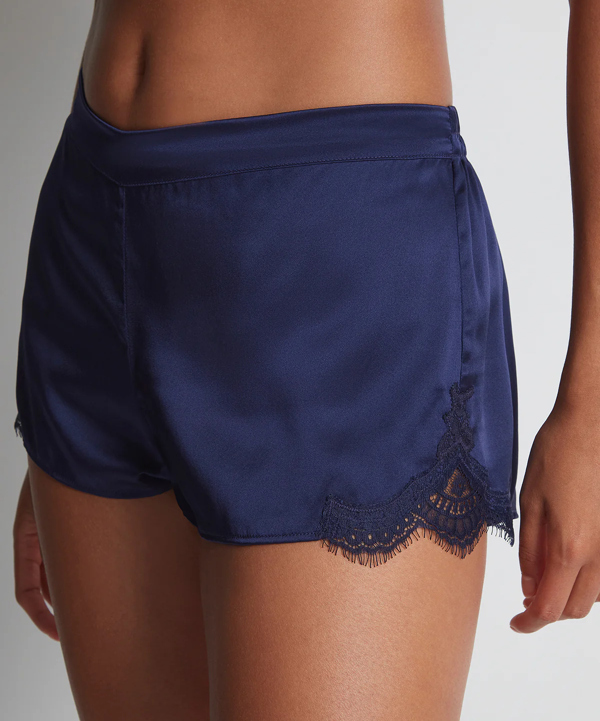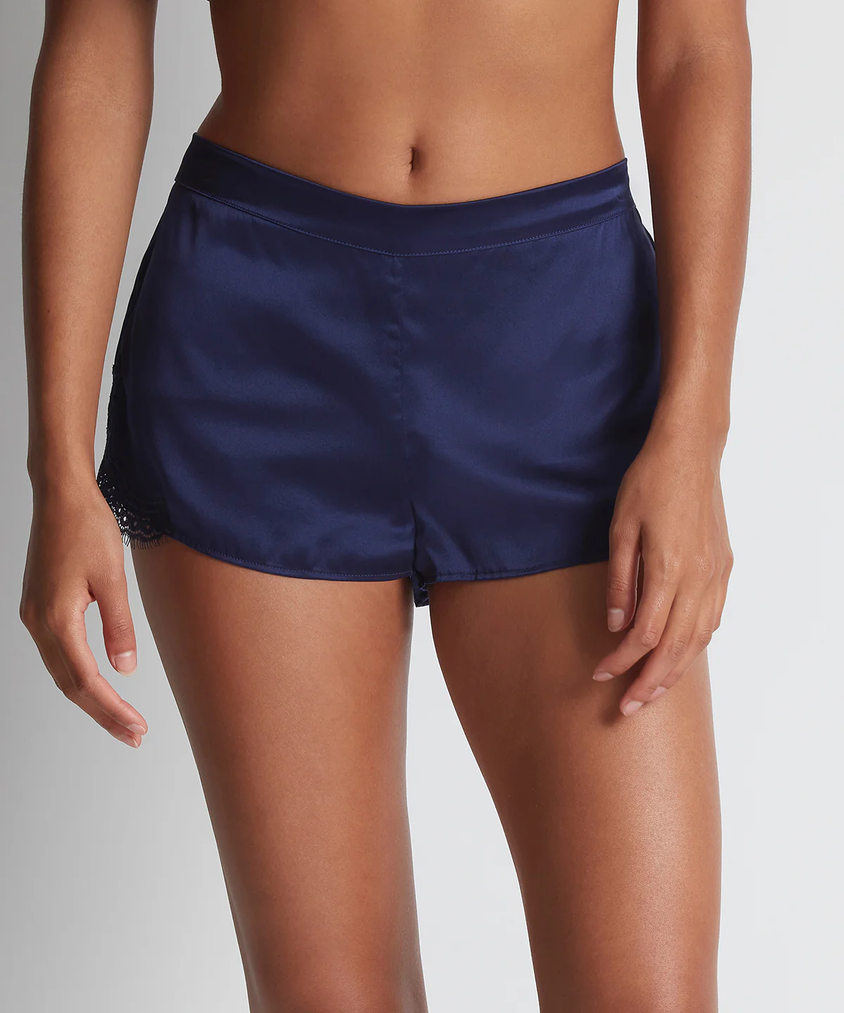 Sexy et élégant, le short Toi Mon Amour offre une coupe fluide et légère, très agréable à porter, en particulier lorsqu’il fait chaud. Entièrement conçu dans une soie douce et délicate au coloris bleu nuit intemporel, sa forme allonge visuellement la jambe grâce à des effets de découpe sexy surmontés de dentelle sur les côtés et sa ceinture, plate devant pour un confort et un maintien parfaits, ne comprime pas le ventre pour des moments de bien-être sans accroc.