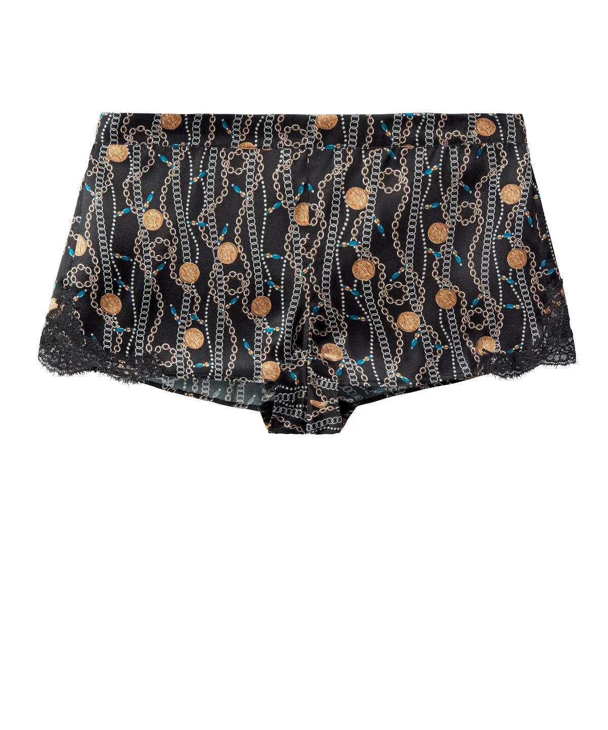 Avec sa coupe échancrée et raffinée, le shorty Toi Mon Amour dévoile les courbes féminines avec sensualité et élégance. Conçu en soie délicate et orné de dentelle jacquard coordonnée, il se décline en un nouveau coloris vert Émeraude