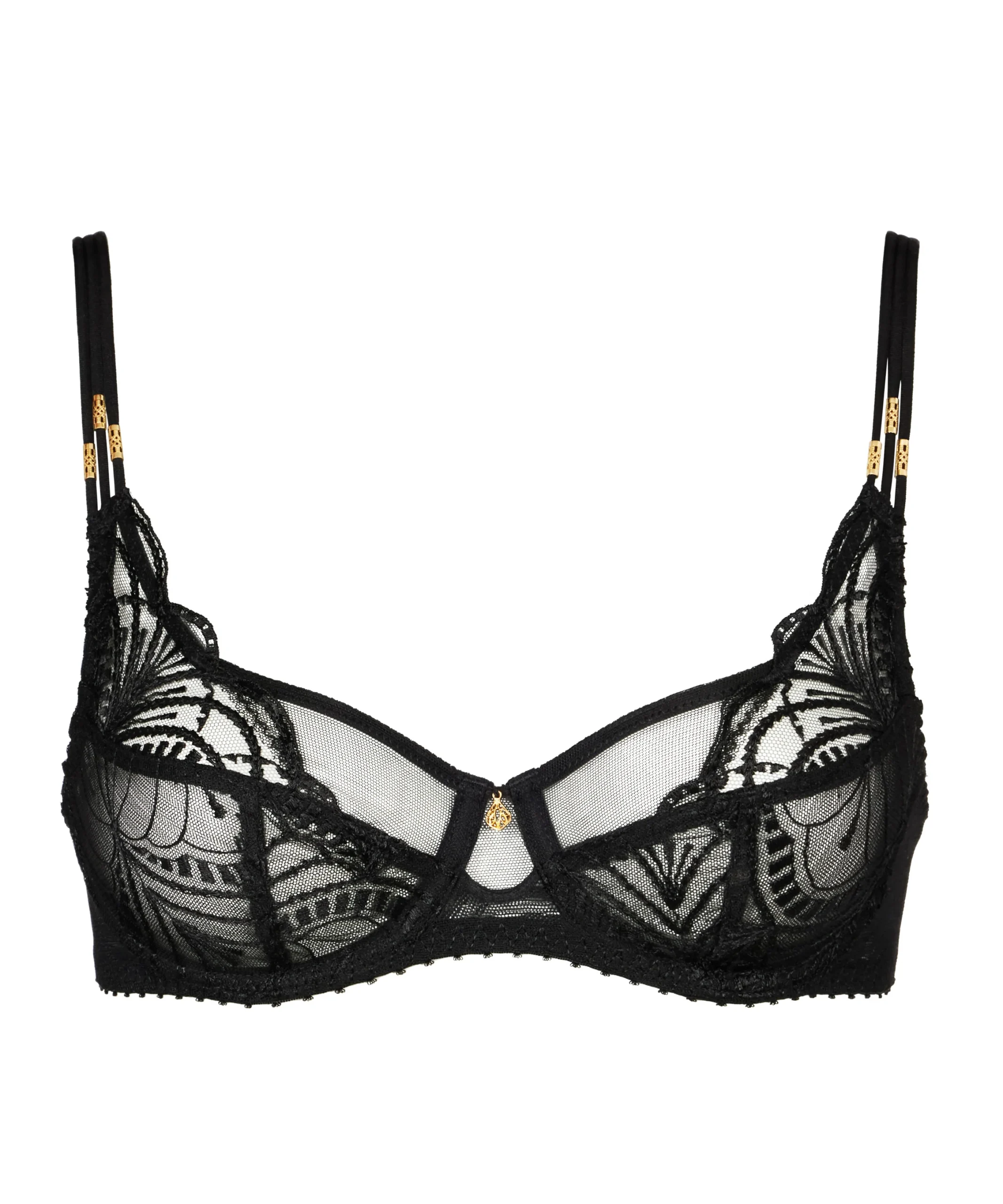 Tout en jeux de transparence et de matières, le soutien-gorge emboîtant foulard Vibes déploie sa broderie délicate, conférant au décolleté une forme arrondie très sexy, encadrée par des touches dorées élégantes. Pensé pour apporter une sensation de confort absolu, il offre un dos ouvert dont la coupe renforce le maintien.